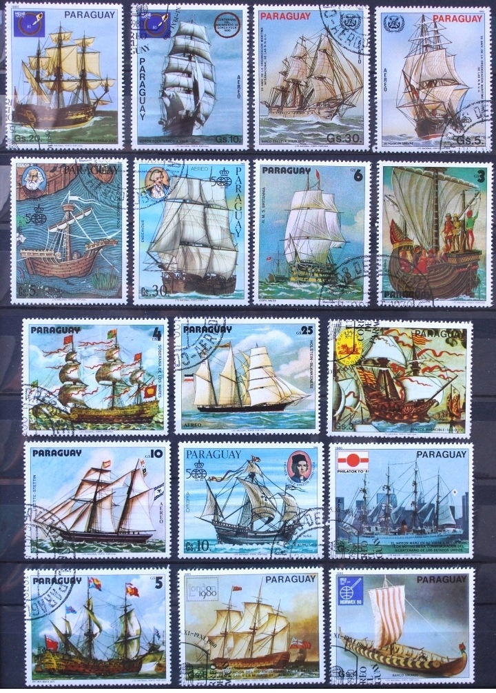 ПАРАГВАЙ - ДРЕВНИЕ ПАРУСНЫЕ КОРАБЛИ - КОЛЛЕКЦИЯ ИЗ 2 СКАНОВ