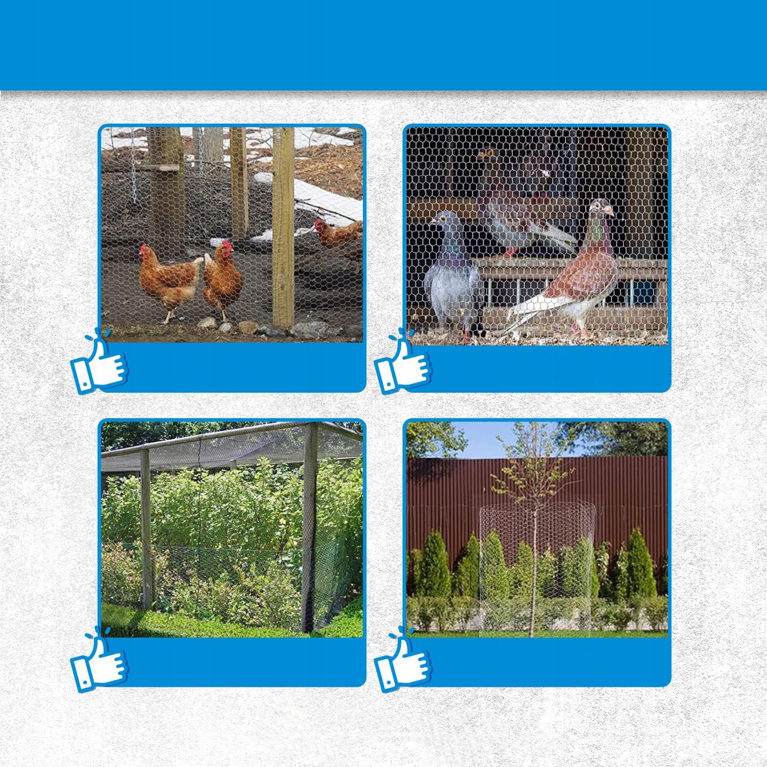 ➡️ Проволочная сетка для куриных клеток: Забор из проволочной сетки изготовлен из высококачественной железной проволоки, не содержащей свинца, с оцинкованной поверхностью, устойчивой к коррозии и не поддающейся коррозии. Благодаря шестиугольной сетке она прочная и долговечная, легкая и удобная в переноске.