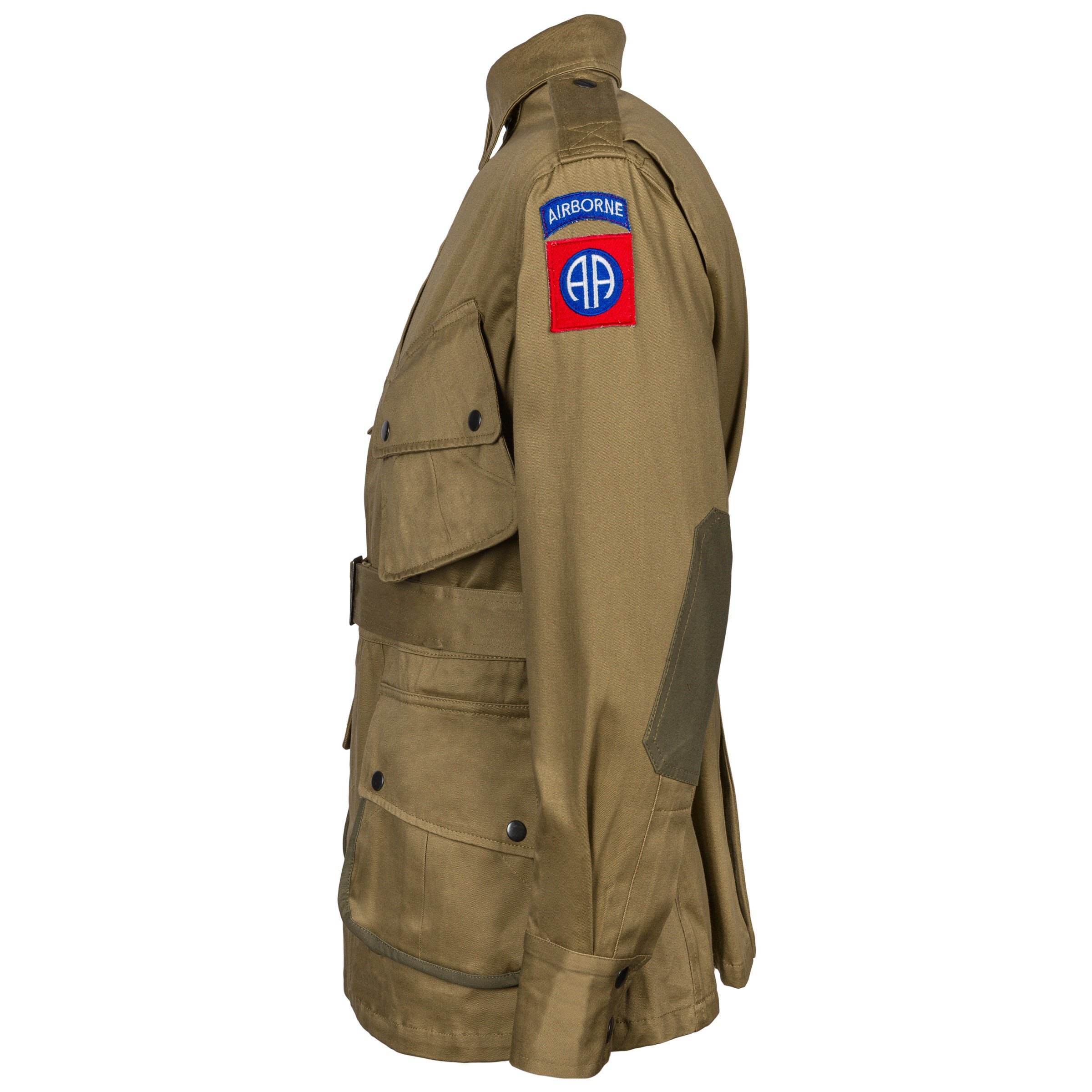Идеальная копия формы десантника М42 вооруженных сил США. Комплект состоит из толстовки и брюк, вполне характерных для униформы того времени. Это усиленная версия на локтях, коленях и карманах, которая должна была усиливать все во время прыжков и общего использования.