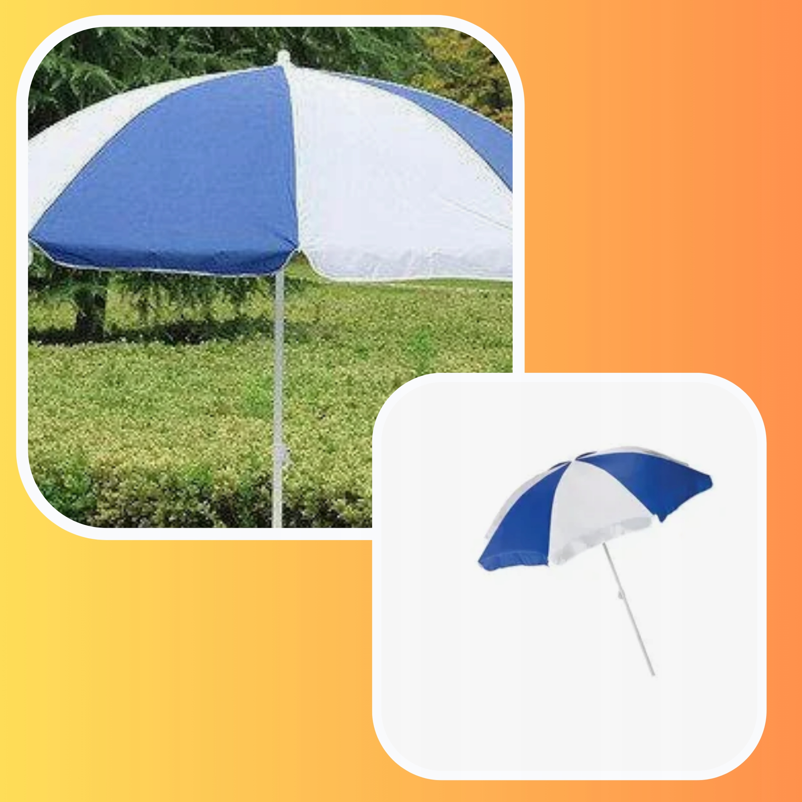 ⭐ Большой водонепроницаемый зонт синего и белого цветов — идеальное решение для жарких дней. Созданный для комфорта и защиты от солнца и дождя, он подойдет как на пляже, так и в саду.