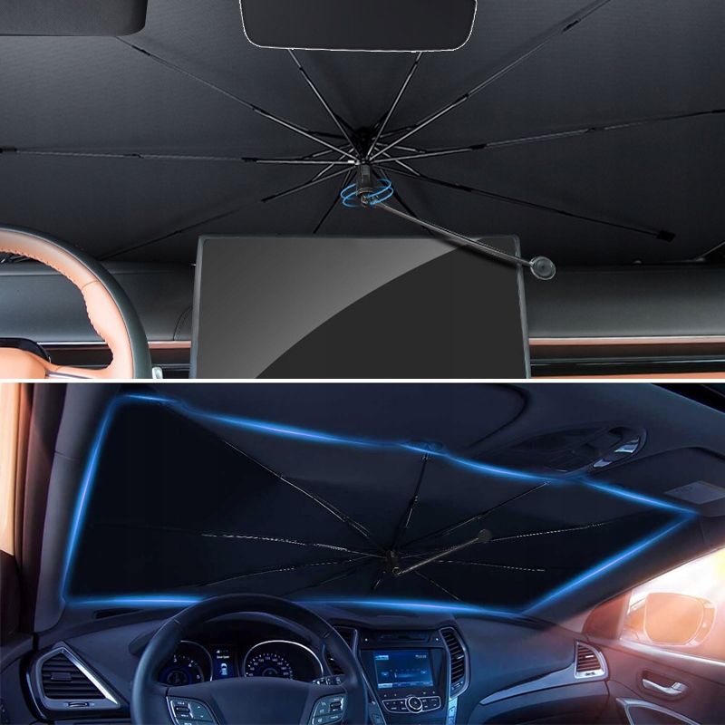 Автомобильный солнцезащитный зонт 10. Прочная рама зонта в основном изготовлена из стекловолокна, прочная рама и устойчивые опоры для обеспечения долговечность этого автомобильного зонта, раму зонта можно согнуть на 90 градусов, не сломав, он легкий. Каркас зонта можно согнуть, чтобы он подходил к различным автомобильным окнам.