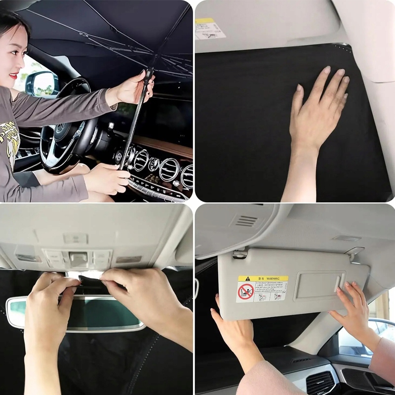 Солнцезащитную шторку на лобовом стекле автомобиля можно быстро открыть и легко установить без инструментов. Автомобильный солнцезащитный козырек можно свободно вращать и складывать на 360°, когда он не используется, его можно удобно хранить в кожаной сумке для хранения и поместить в дверной отсек или бардачок, чтобы избежать скопления мусора.
