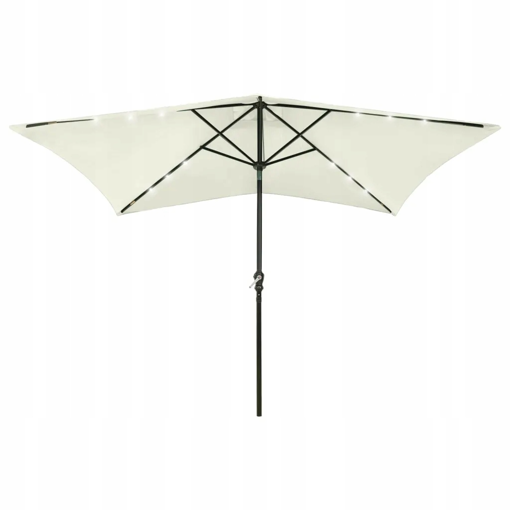 Parasol z lampkami LED, na stalowym słupku, piaskowy, 2x3 m