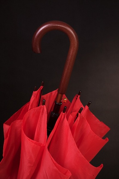Отпечатки выполнены на зонтах очень хорошего качества. Зонт из прочного нейлона. Имеет деревянную ручку, которая раскладывается автоматически. Логотип размещается на одной части зонта