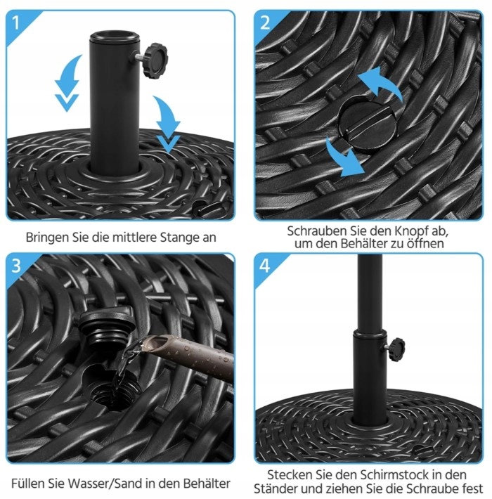 pasal yaheetech зонтик, заполненный водой 22 L HDPE основание зонтичного имитана базового базового базового базового основания бассейна зонтика Ø 3,8 см/ 4,8 см садовая терраса 411354 h1>