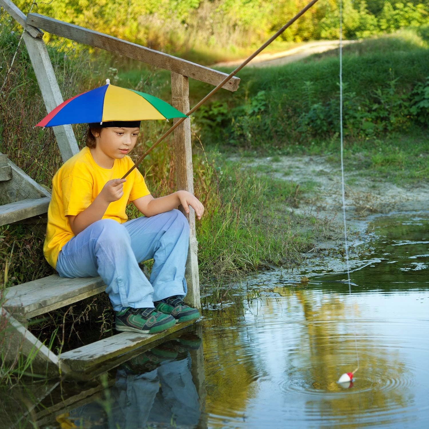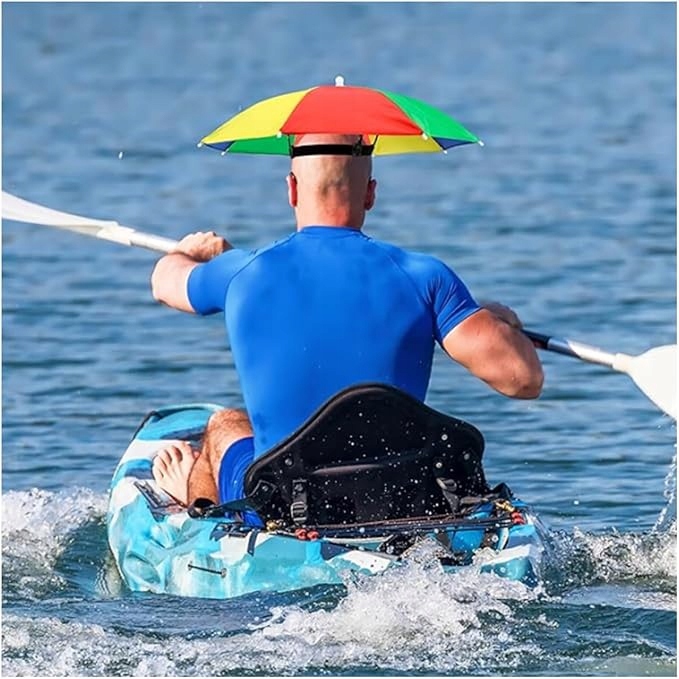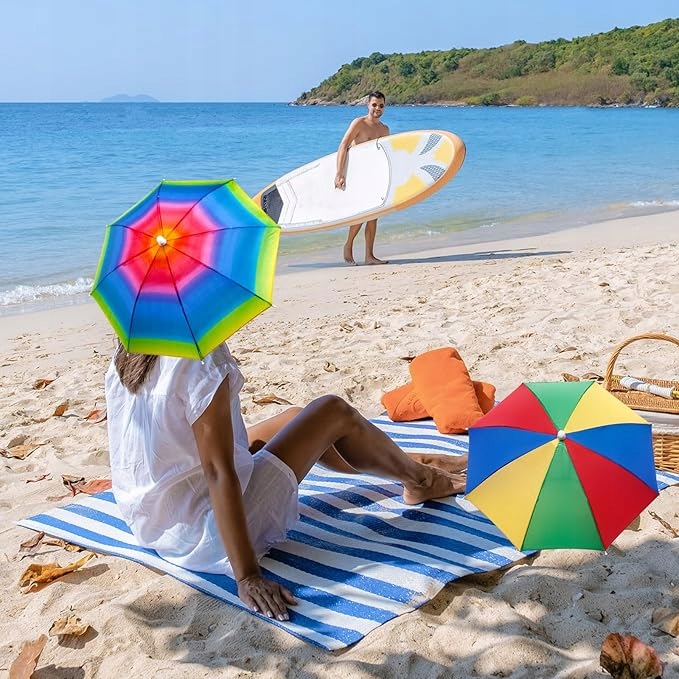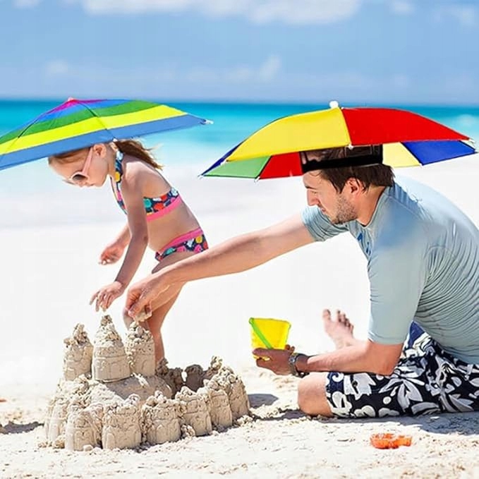🌈 3 кусочки радужных зонтиков, камуфляжные кепки, рыбацкие шляпы, пляжный зонт, ношение повязки.