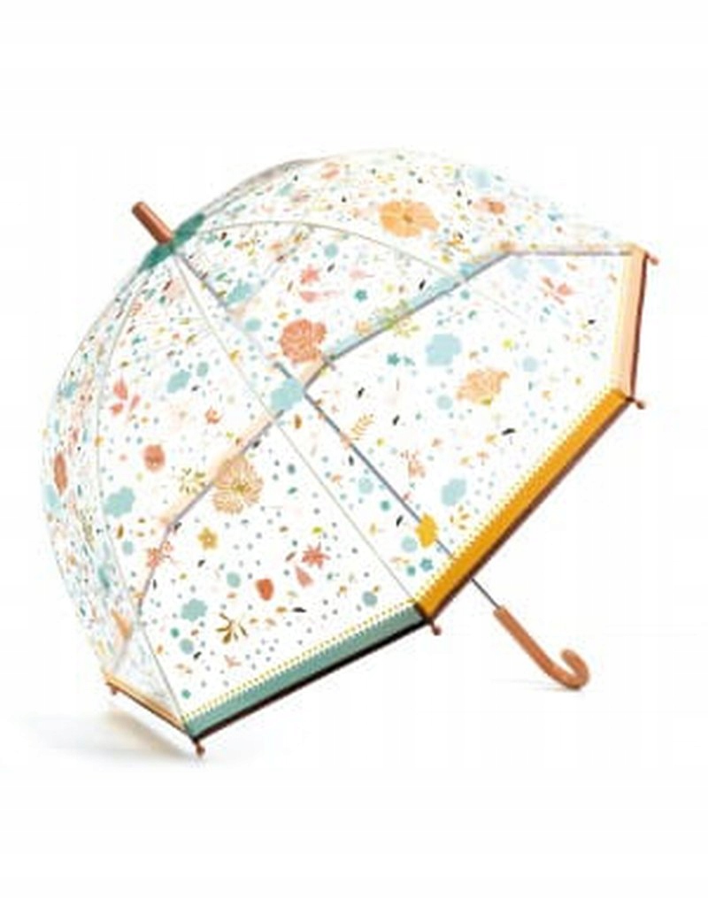 Прозрачный пластиковый зонт Djeco для детей старшего возраста и взрослых защитит вас от дождя и позволит видеть, куда вы идете.