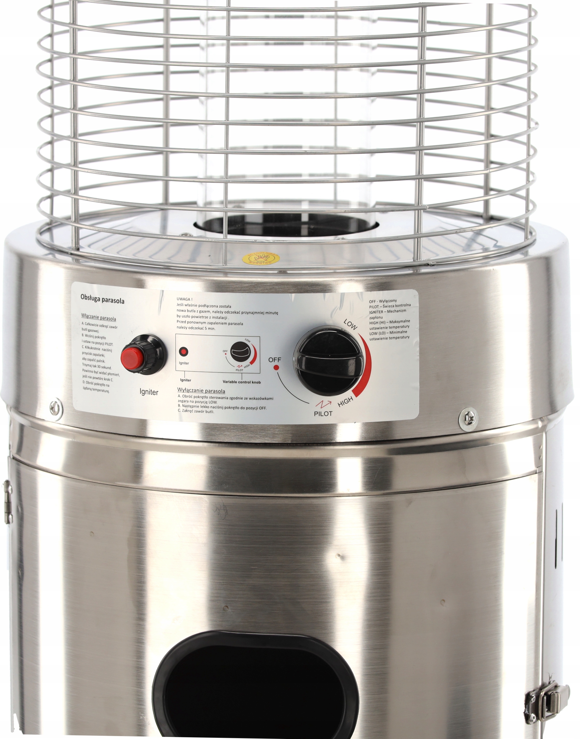 Садовый зонт с подогревом был разработан с учетом безопасности пользователей. Имеет устойчивую конструкцию, предотвращающую опрокидывание во время использования, и автоматическое отключение в случае внезапного опрокидывания зонта.