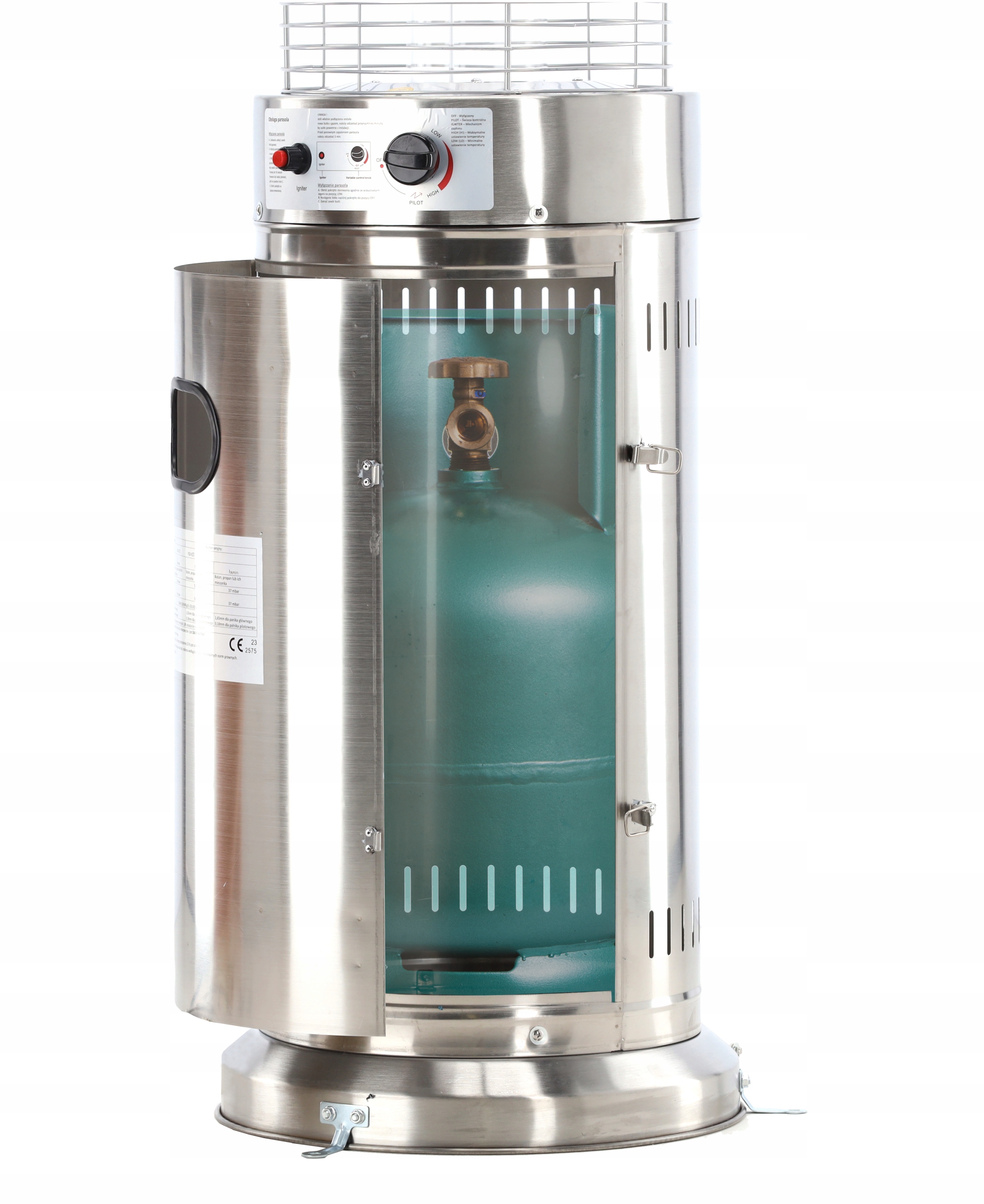 Нагревательные зонты не требуют подключения к электричеству. Работают на сжиженном газе — пропане. В этом случае он работает лучше, чем пропан-бутан, поскольку его температура замерзания составляет -40°С. Пропан подается по шлангу из баллона.