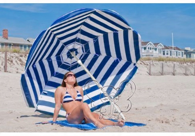 Его купол изготовлен из прочных материалов, устойчивых к интенсивному излучению, призван сохранять приятную прохладу и не нагревать тело или предметы, спрятанные под зонтом.
