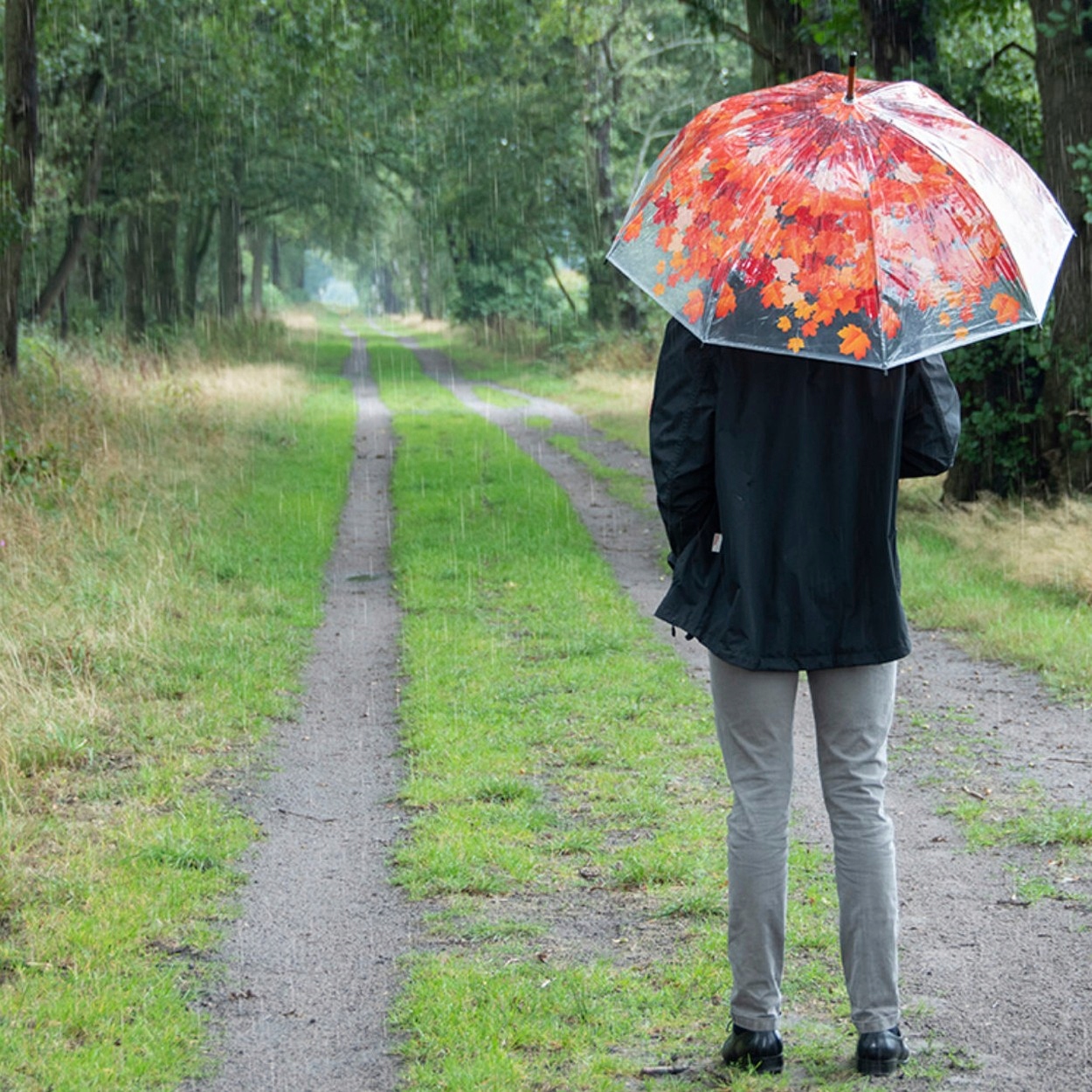 Зонт прозрачный с принтом осенних листьев, размеры в разложенном виде: 94,5см х 94,5см х 88,5см