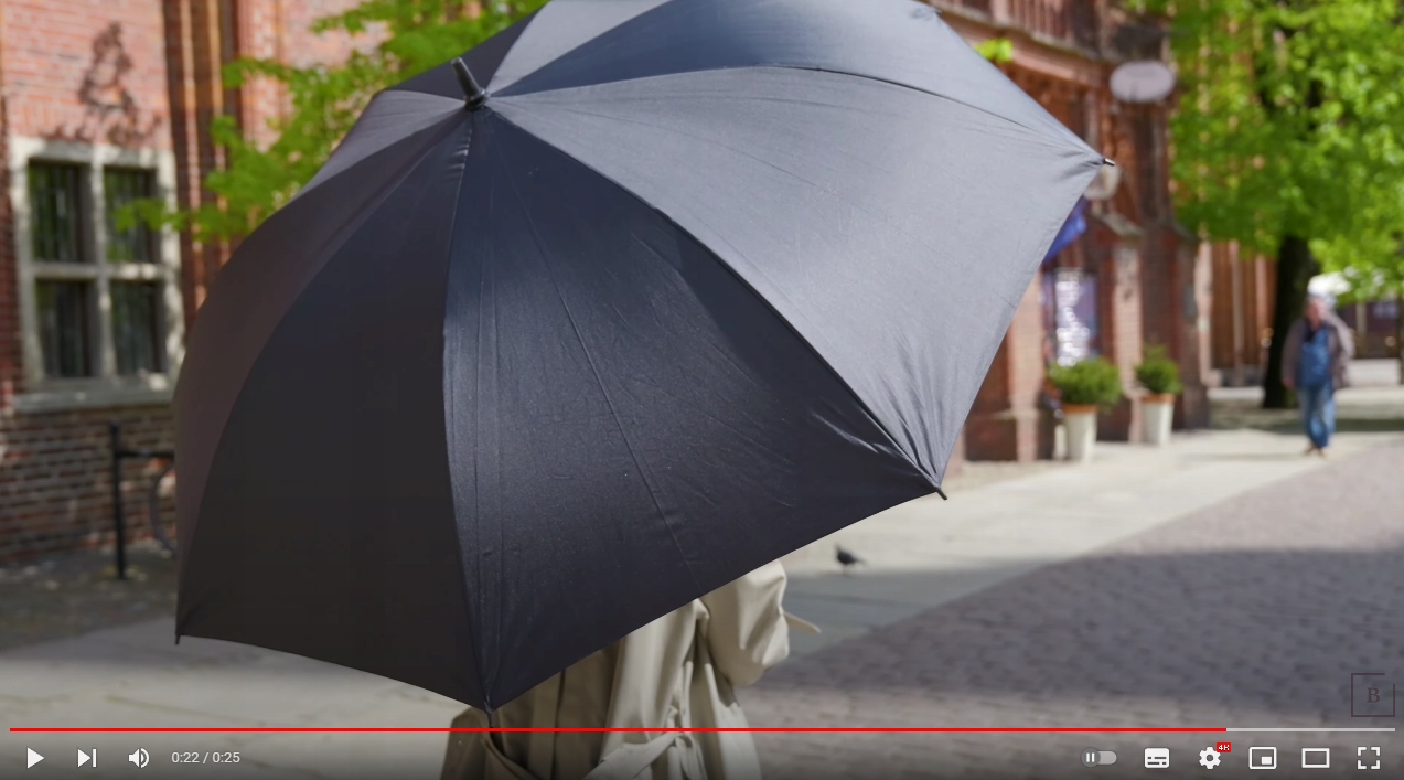 Большой, удобный прямой зонт с автоматическим механизмом открывания. Изготовлен из водонепроницаемой ткани. Очень прочный зонт сохраняет свою первоначальную форму даже при сильном ветре.