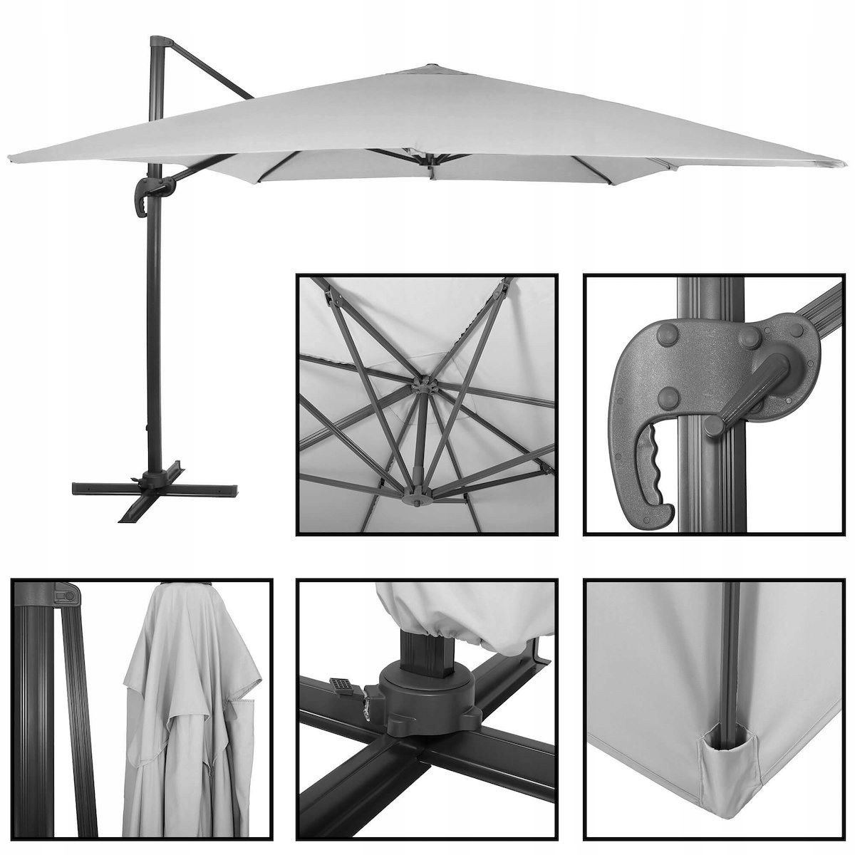 Зонт оснащен механизмом вращения, поэтому вы можете очень легко менять его угол, не перемещая его. Это его основание вместе с грузом. Просто нажмите ножную кнопку, расположенную в основании, чтобы повернуть зонт в любом направлении и установить его в нужное положение. Если отпустить кнопку, зонт зафиксируется в нужном положении.