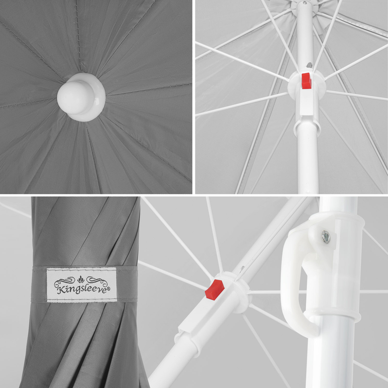 Функция наклона позволяет индивидуально регулировать зонт в зависимости от положения солнца. Благодаря наземному шипу зонт можно закрепить на песке или использовать подставку для зонта (не входит в комплект). Навес зонта изготовлен из водонепроницаемого материала с защитой от солнца UV50+, защищающего от солнца или небольшого летнего дождя. Опоры мачты и зонта изготовлены из стали с порошковым покрытием. Используя крепежный ремень, вы можете легко завязать зонт перед упаковкой и транспортировать его в прилагаемой сумке для переноски. Благодаря практичной сумке и небольшому весу (чуть более 1 кг) зонт идеально подходит для вашего следующего визита на пляж или следующего пикника.