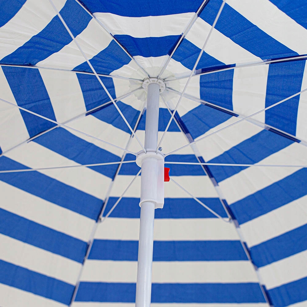 Зонт обеспечивает не только надежную защиту, но и удобство использования. Благодаря легкости раскладывания и складывания он чрезвычайно практичен и идеален для того, чтобы брать его с собой в путешествие. Одним из самых больших преимуществ продукта является функция наклона, которая позволяет регулировать угол наклона купола в соответствии с вашими индивидуальными предпочтениями. Зонт также регулируется по высоте в диапазоне 110-180 см.