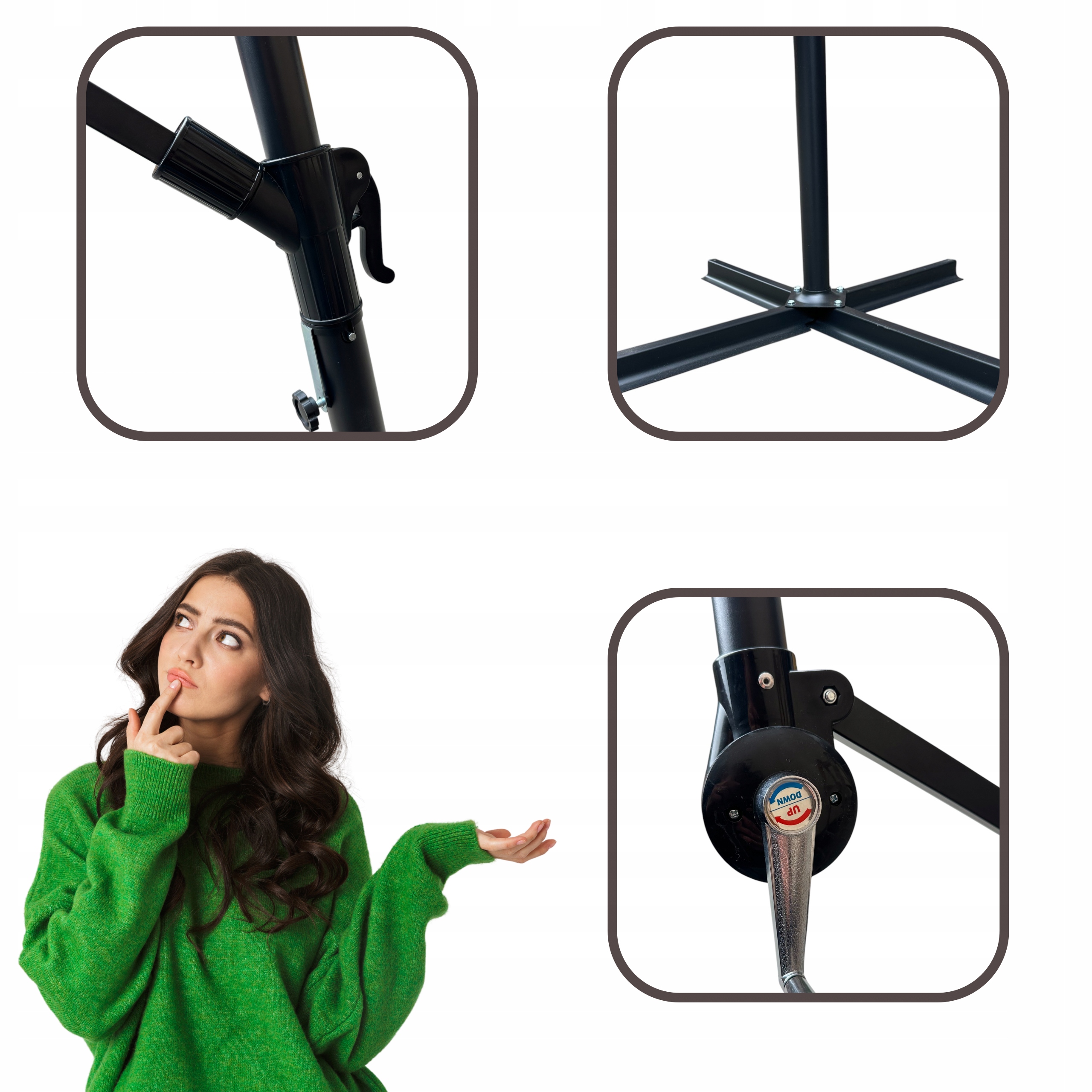 ✔️ Регулируемая высота и угол наклона – вы можете легко отрегулировать зонт, чтобы обеспечить тень именно там, где вам это нужно, независимо от солнца или ветра.