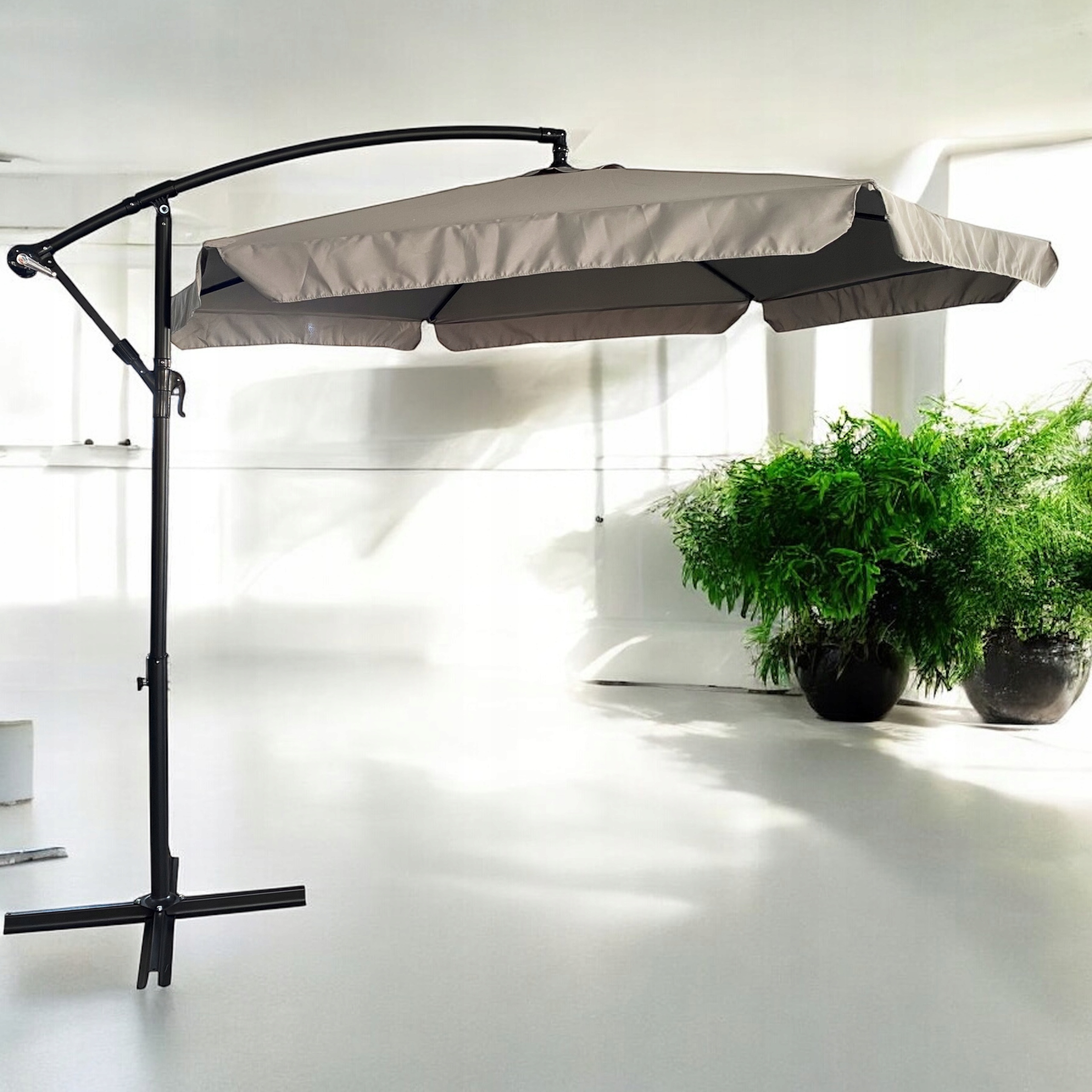 БОЛЬШОЙ СКЛАДНОЙ САДОВЫЙ ЗОНТ С РУЧКОЙ 350см + КРЫШКА - СЕРЫЙ