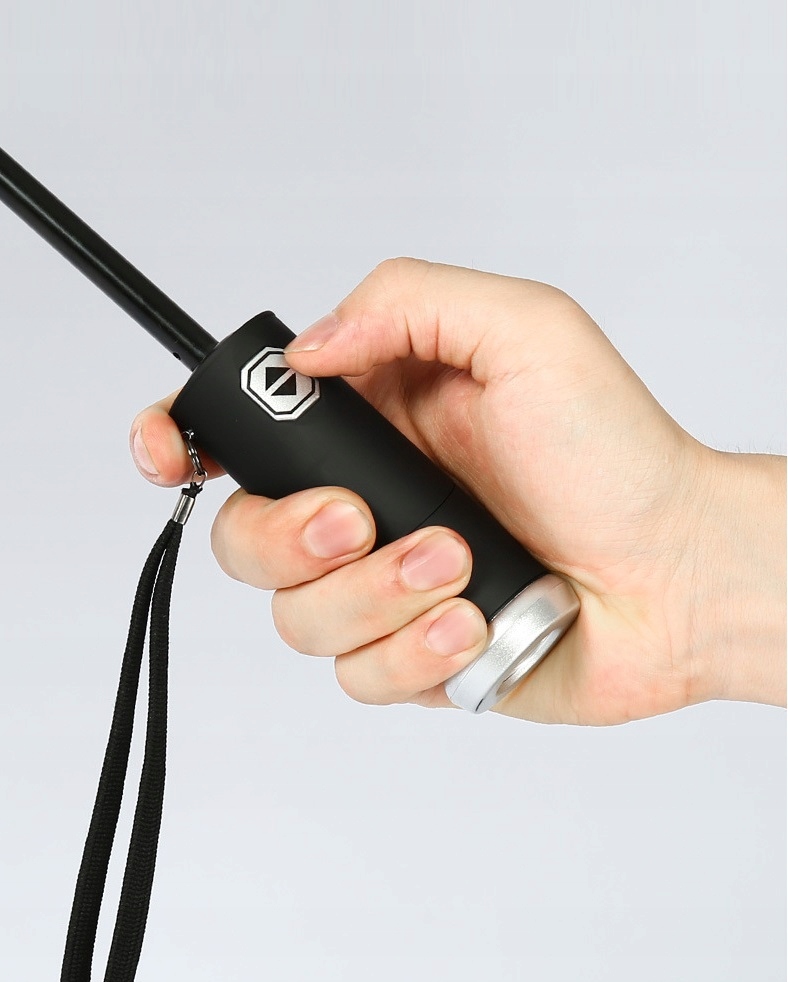 Складной автоматический зонт с фонариком, который поможет осветить дорогу дождливым вечером. Водонепроницаемый и ветрозащитный чехол. Цветной снаружи, черный внутри, с серой светоотражающей полосой вдоль зонта.