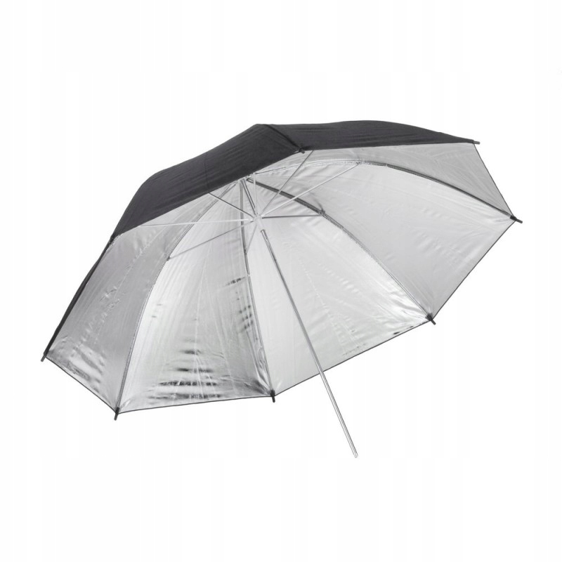 В отличие от белого зонта, серебряный дает более контрастный свет.