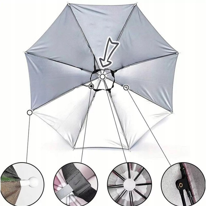 - Универсальный размер — зонт имеет эластичную ленту, которая адаптируется к разному размеру головы.
