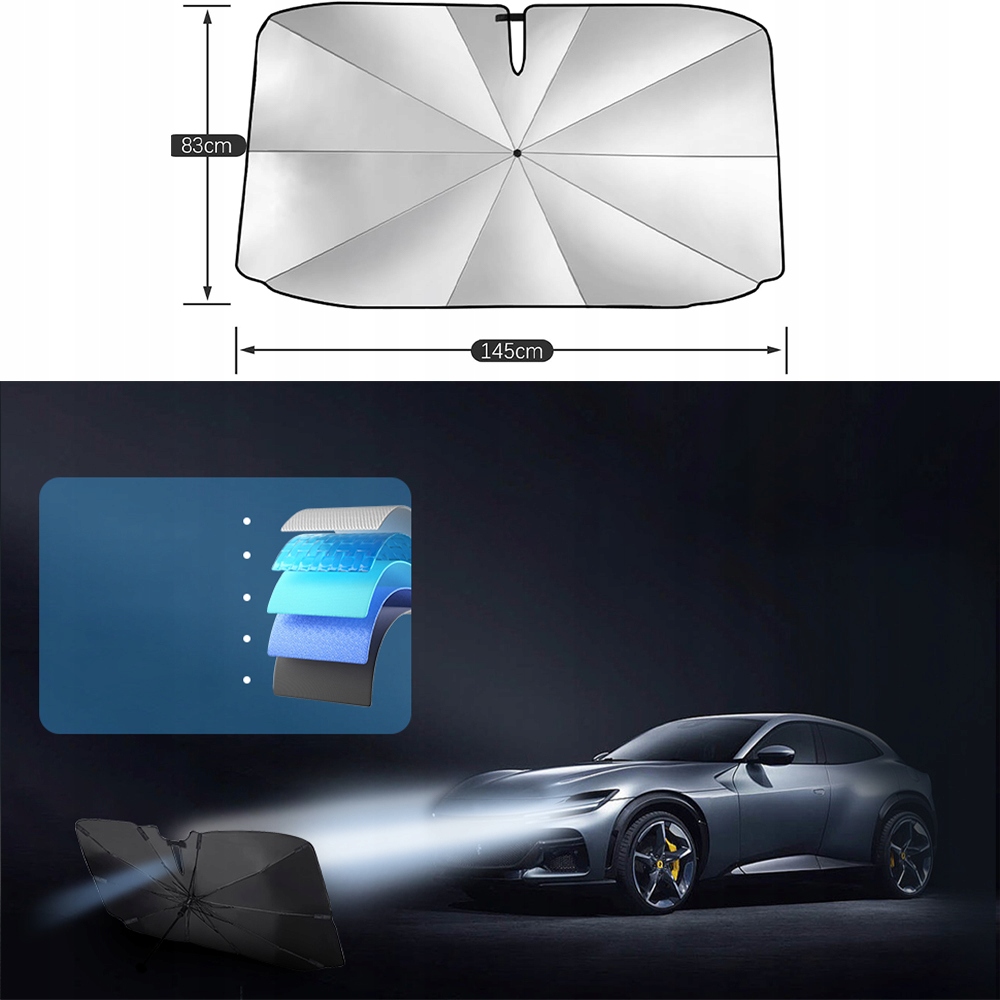 зонтик для автомобильного стекла с роторной ручкой 360 °, солнцезащитным кремом в скелете углеродного волокна h2>