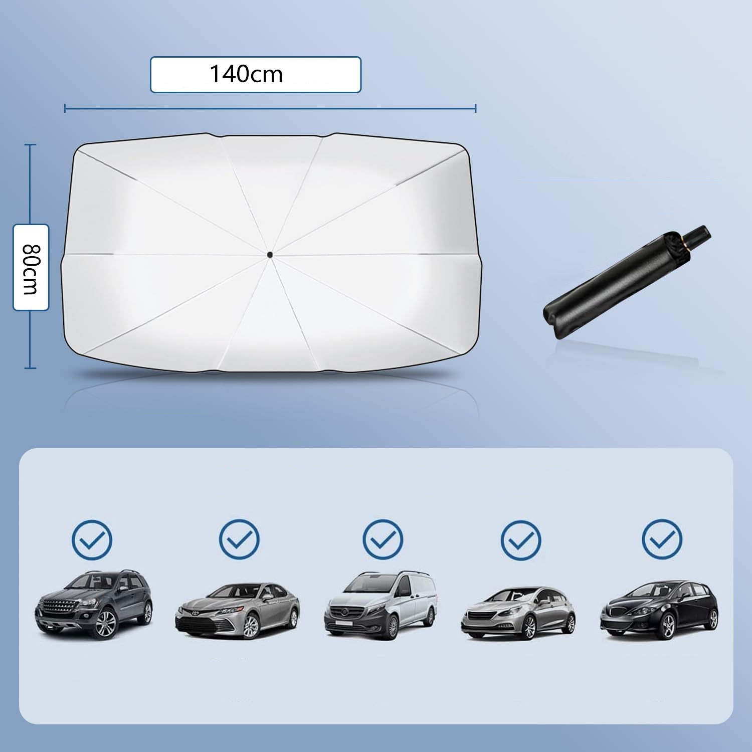 Структура зонтика солнцезащитного крема имеет десять стальных ребер, чтобы обеспечить хорошую поддержку и предотвращение падения. Он блокирует ультрафиолетовое излучение и защищает интерьер, вам не нужно беспокоиться о потере или краже.