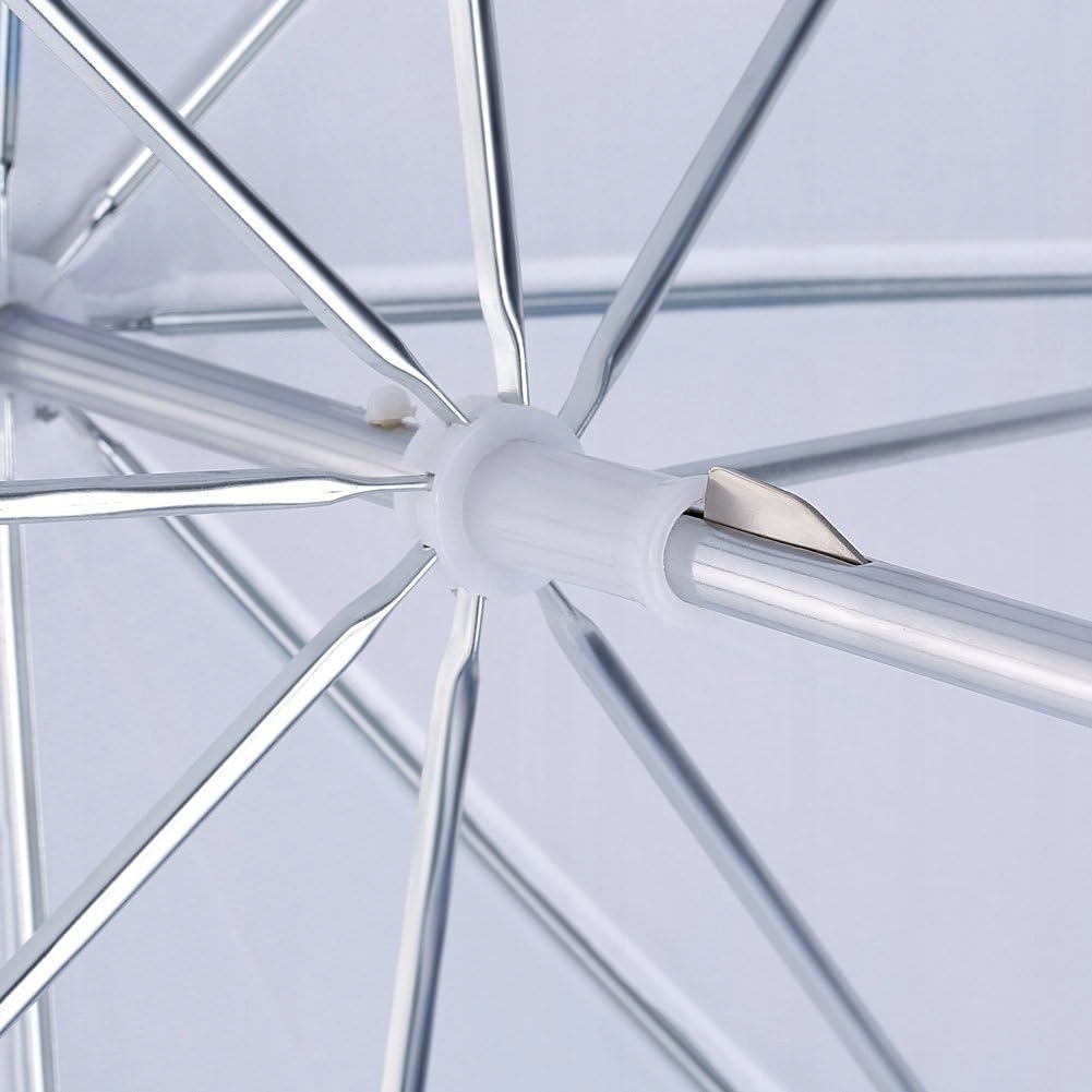 Зонт чрезвычайно высокий качество и впечатляет с его благородным внешним видом. Как наконечник, так и рама изготовлены из металла, что обеспечивает большую стабильность и, следовательно, более длительный период работы. Металлический кончик вала усилен, поэтому вы можете легко поместить его в ручку отражателя на студийную вспышку.
