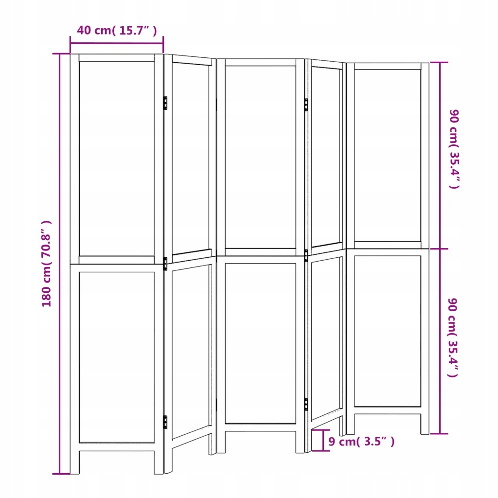 Ширма для гостиной, 5 панелей, темно-коричневый, массив павловнии