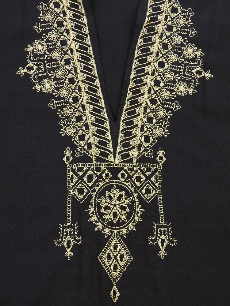 - , украшенная элегантной оригинальной вышивкой на вырез и по бокам,