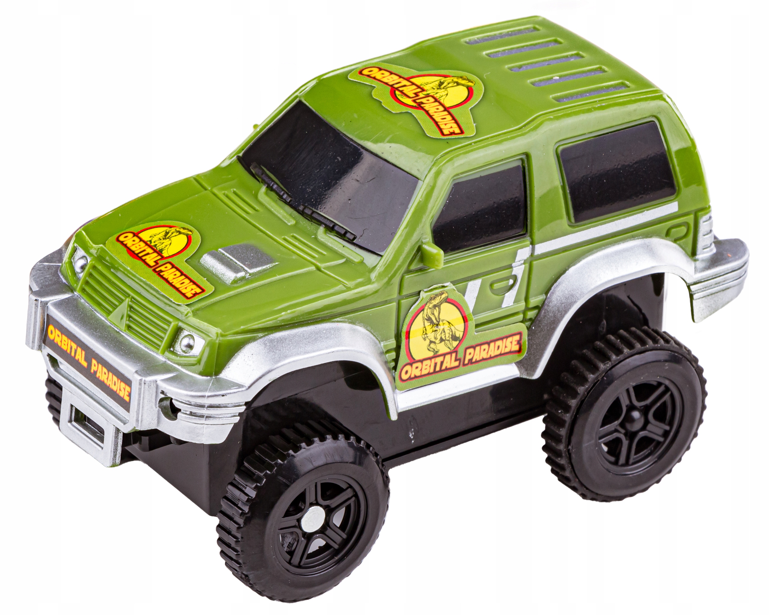 - Игрушка-внедорожник с приподнятым шасси легко преодолевает подъемы и повороты.
