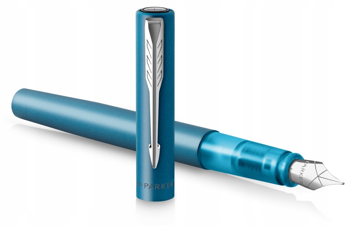 Атласно-бирюзовая металлическая отделка дополняется хромированной отделкой и характерным зажимом-стрелкой PARKER. Она имеет уникальный прозрачный корпус, позволяющий увидеть внутренний механизм ручки. Большой прочный наконечник из нержавеющей стали обеспечивает комфортное и плавное письмо.
