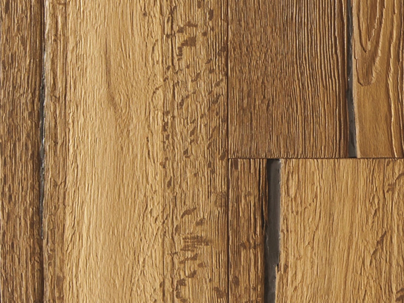ДУБ НЬЮ-ХЕМПШИР из коллекции КЕНТУККИ — однополосная доска в очень рустикальном стиле. Копчёный, брашированный, с видимыми трещинами, смазанный маслом. Снятие фасок происходит на всех краях.