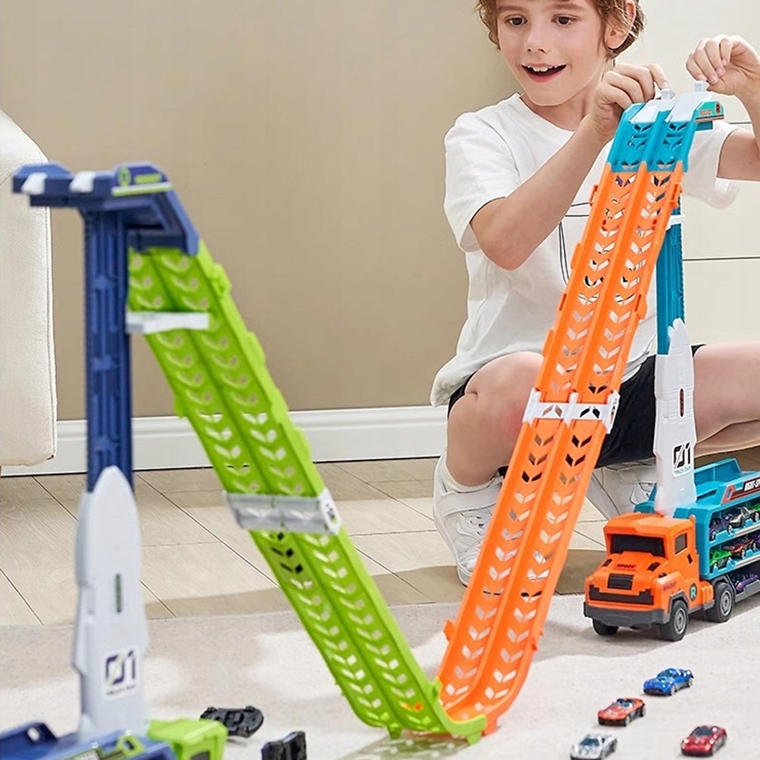 🚚 оснащен двумя начальными путями с длиной 86 см, вы можете легко создать дорожку достаточно долго для индивидуальных или многопрофильных гонок, просто разблокируя защелку на спине zgubieniu Я делаю Pchania I Ciągnięcia, Zwięksając Interaktywnoś Zabawek. Без запаха и гладкая, без заусенцев, поверхность защищает маленькие руки детей от повреждений