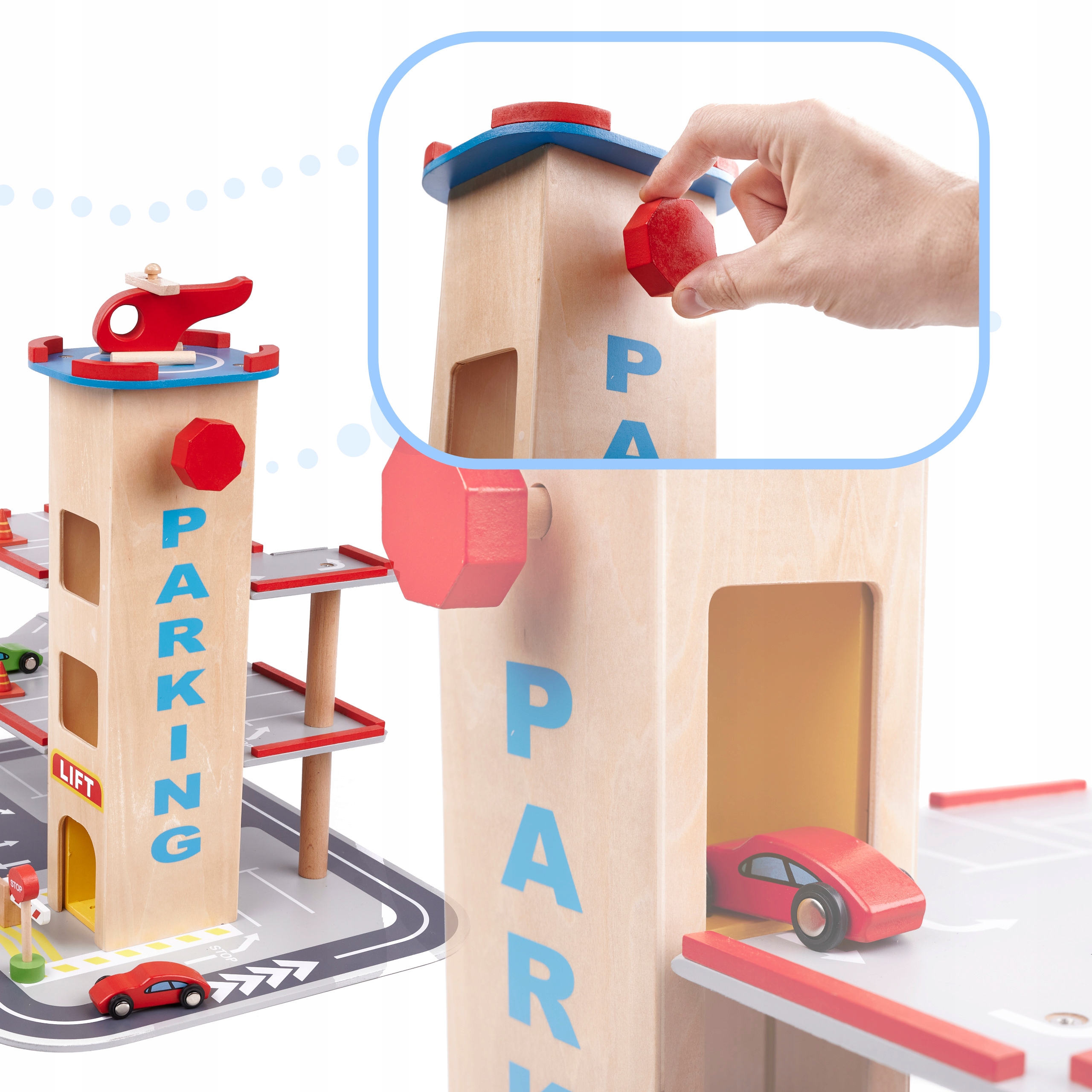 PARKING DREWNIANY GARAŻ DLA DZIECI BENINO PIĘTROWY WINDA AUTA AKCESORIA