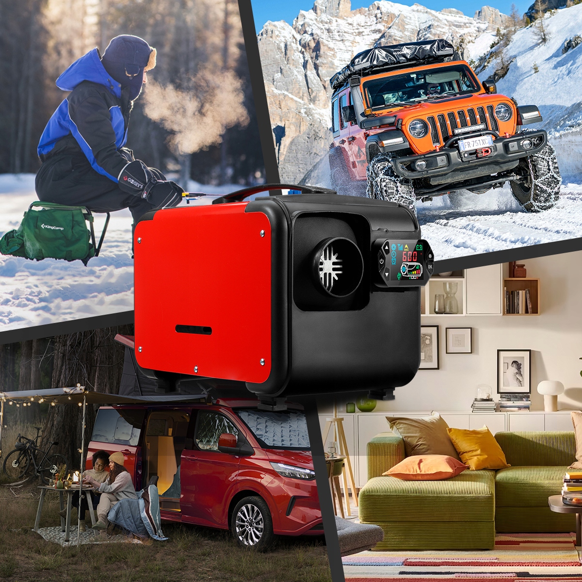 - Сильный нагрев - 8 кВт отопления, идеально подходит для транспортных средств, домиков, мастерских, лодок, а также для размораживания стекла.