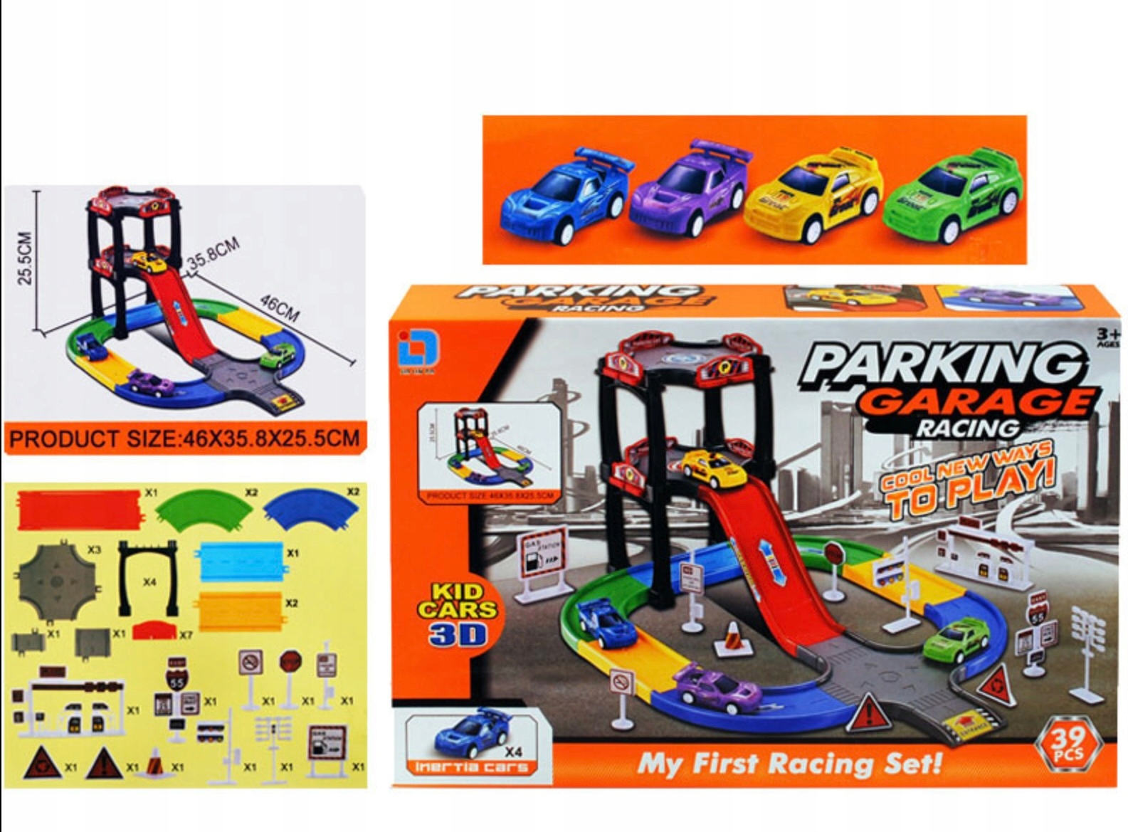 Эта красочная парковка с гоночной трассой - идеальный набор для детей, которые любят машинки, горки и динамичные развлечения!