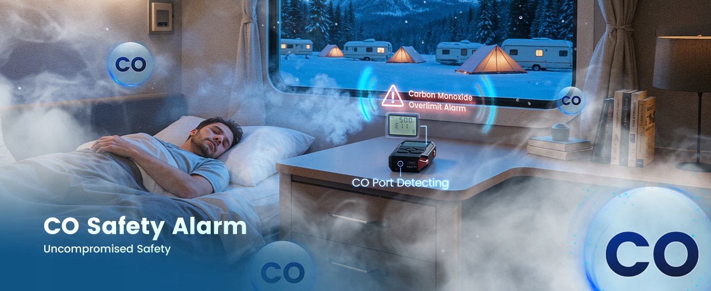 【Тихая работа благодаря тихому топливному насосу】 Выпуск воздуха остается основным источником шума (65 дБ, что эквивалентно обычному разговору), но наш улучшенный тихий топливный насос устраняет раздражающий тикающий шум, характерный для традиционных обогревателей. Идеально подходит для непрерывного сна в кемперах, коттеджах или палатках. Наслаждайтесь надежным теплом всю ночь без мешающего шума обогревателя.