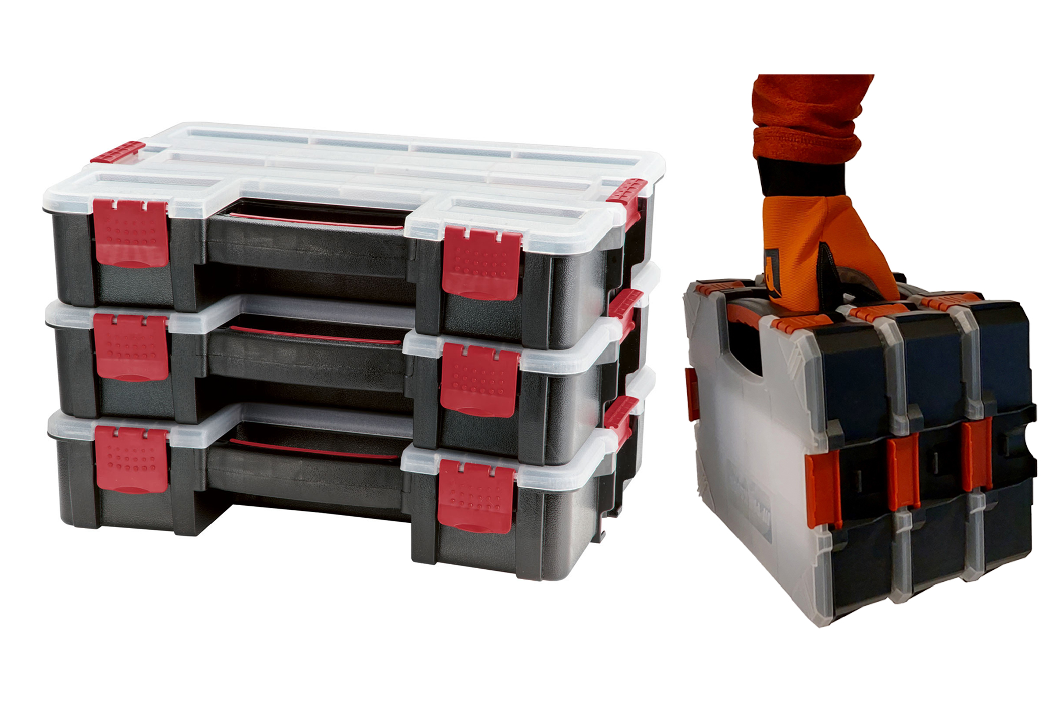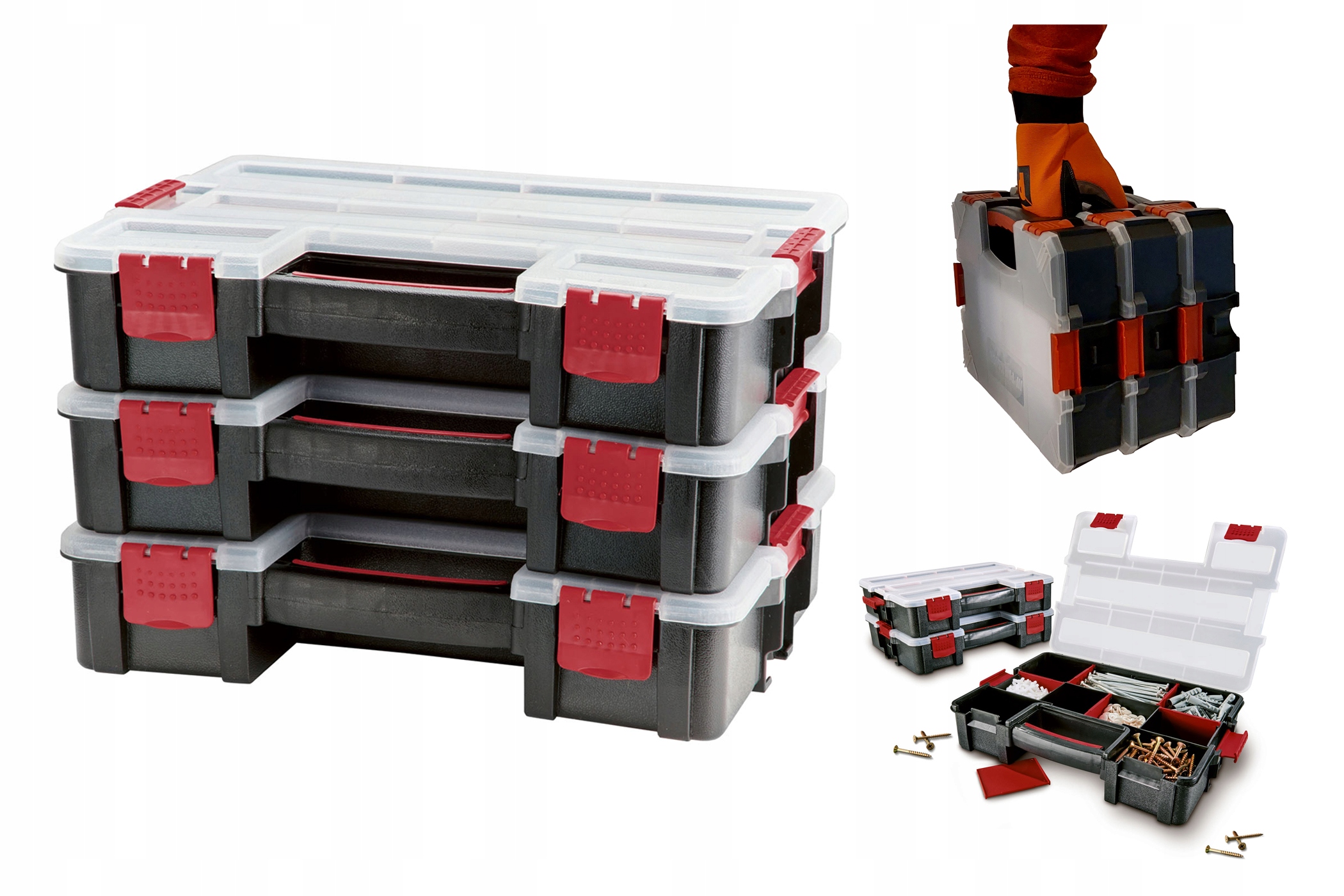 Организатор мастерской состоит из 3 ящиков, которые можно использовать индивидуально или подключен. Это обеспечивает прозрачное хранение мелких деталей в коробках.