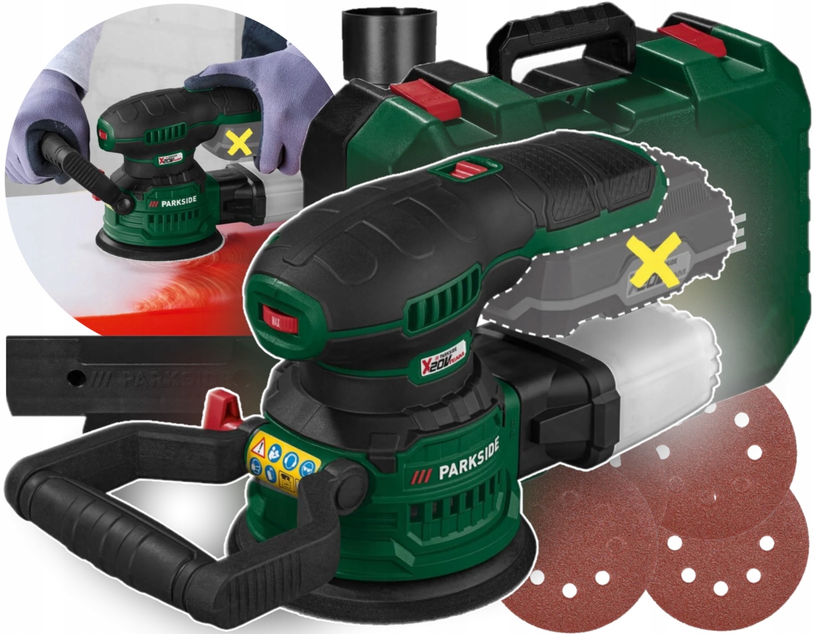 - Подходит для абразивных документов, доступных в торговле по 125 мм (например, бренды Parkside)
