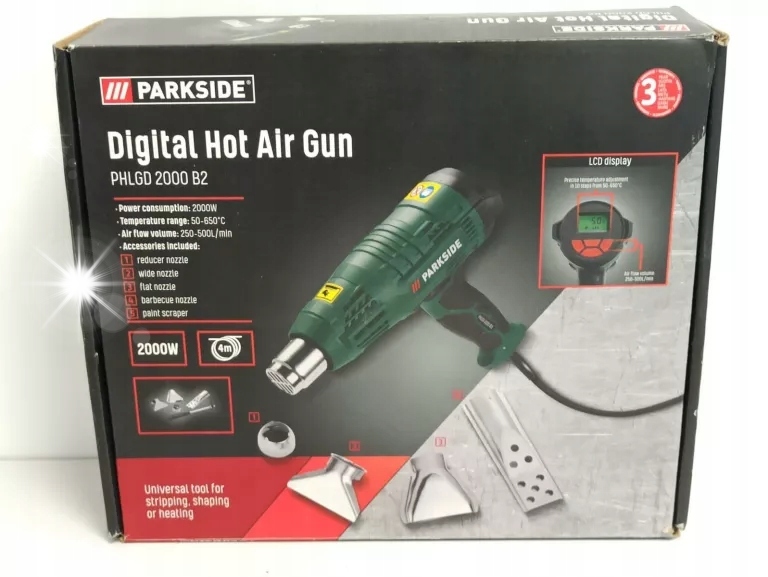 PARKSIDE POWERFUL PHLGD 2000W Тепловая пушка ЖК-ДИСПЛЕЙ + 4 НАСАДКИ АКСЕССУАРЫ