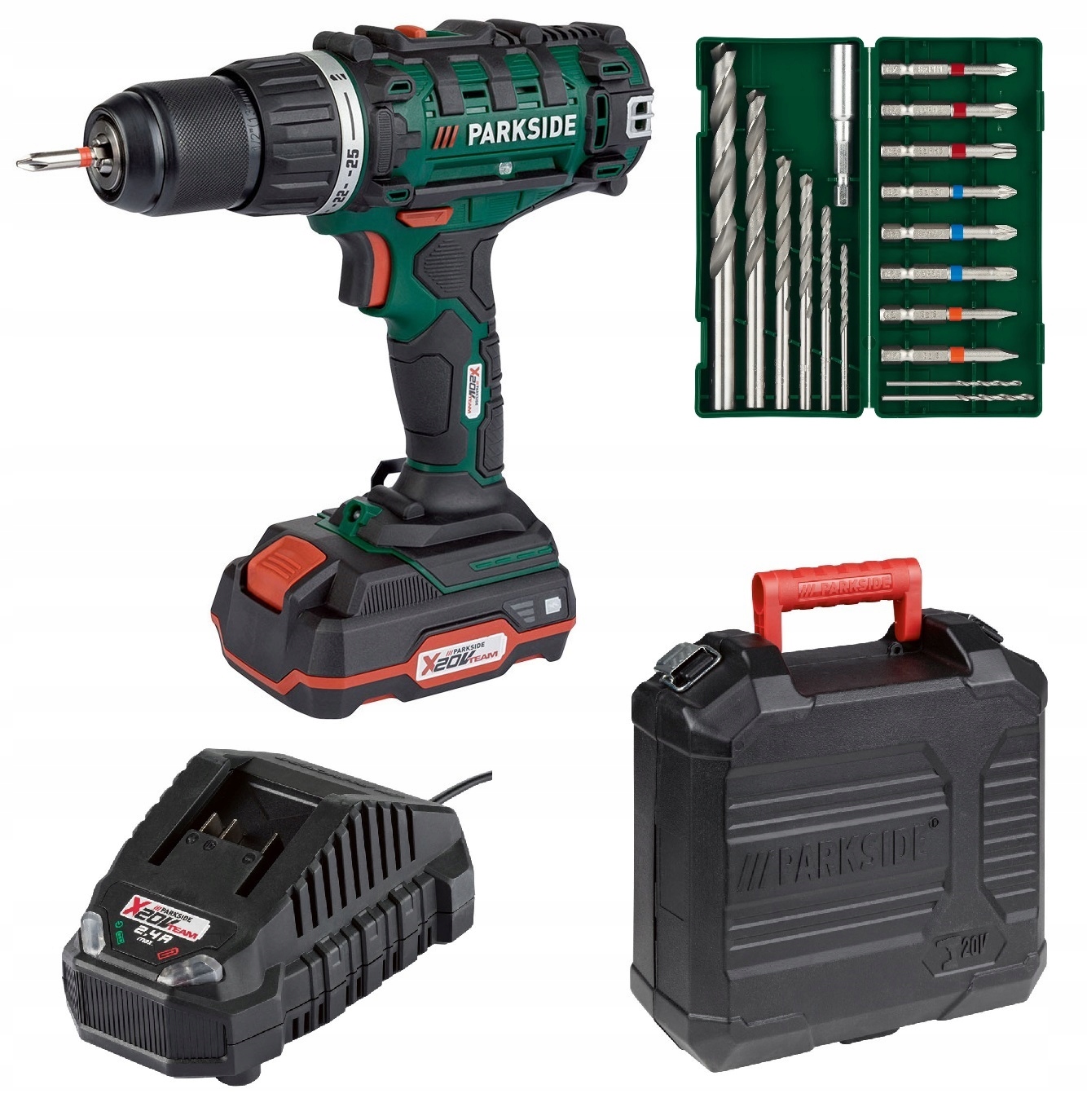 PARKSIDE WIERTARKA WKRETARKA PABS 20-Li G8 20V 2 Ah LADOWARKA WALIZKA 45 Nm