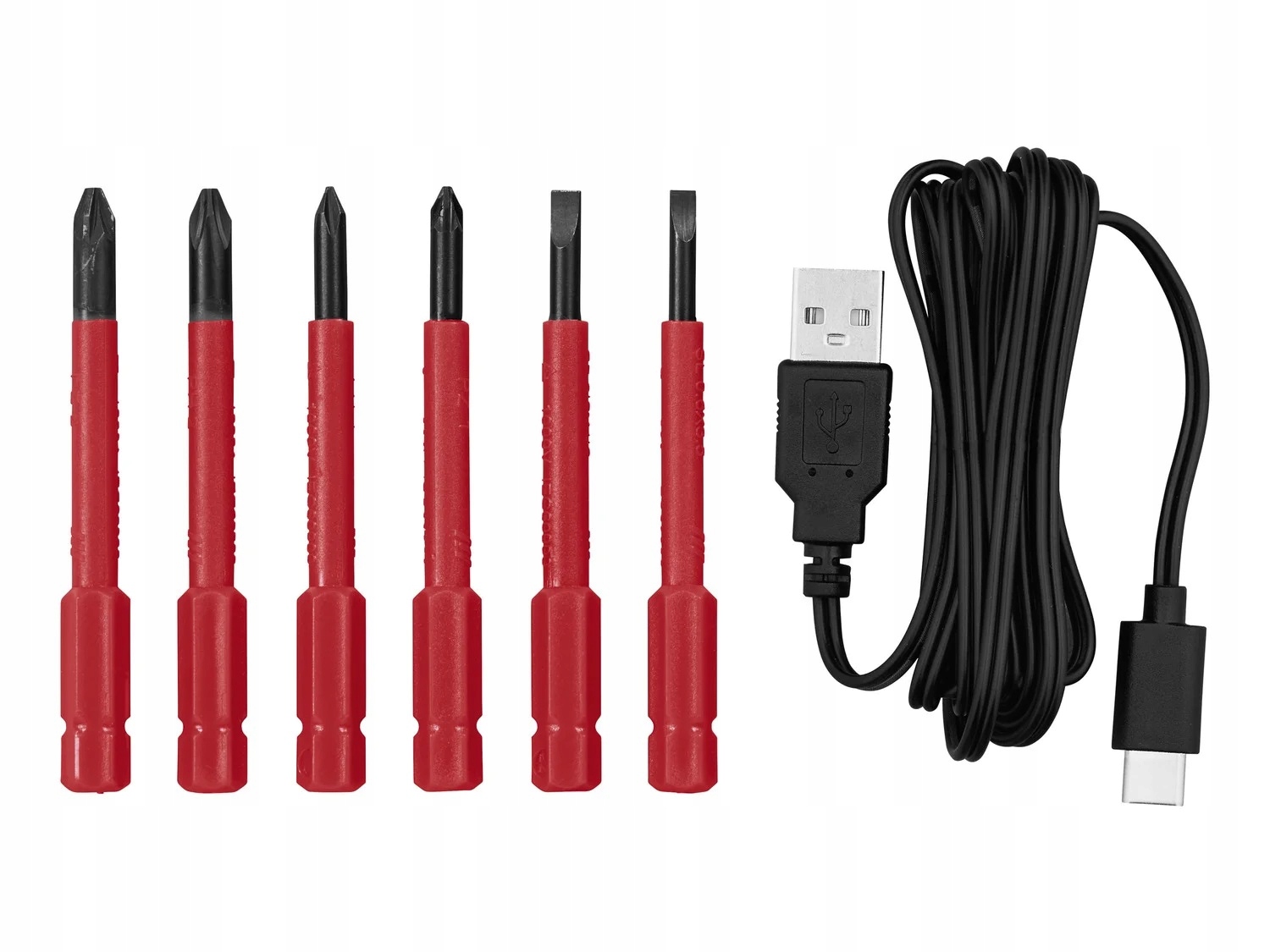 - 6 специальные наконечники (1 разъем: 3,5 мм, 1 разъем: 4 мм, 1 разъем Phillips: PH1, 1 разъем Phillips: PH2, 1 разъем Pozidriv PZ1, 1 разъем Pozidriv PZ2)