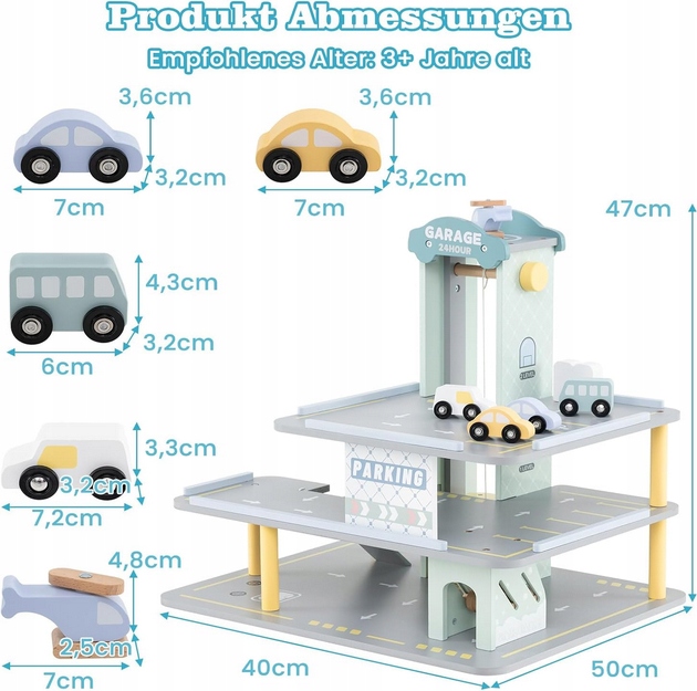 - 【Комплексный игровой набор】В нашем 3-этажном гараже есть все необходимое для бесконечного веселья, включая 4 красочных автомобиля и вертолет. Сочетание лифта, вертолетной площадки, заправочной станции, автомойки, наклона и подъемной штанги позволяет часами творчески заниматься.