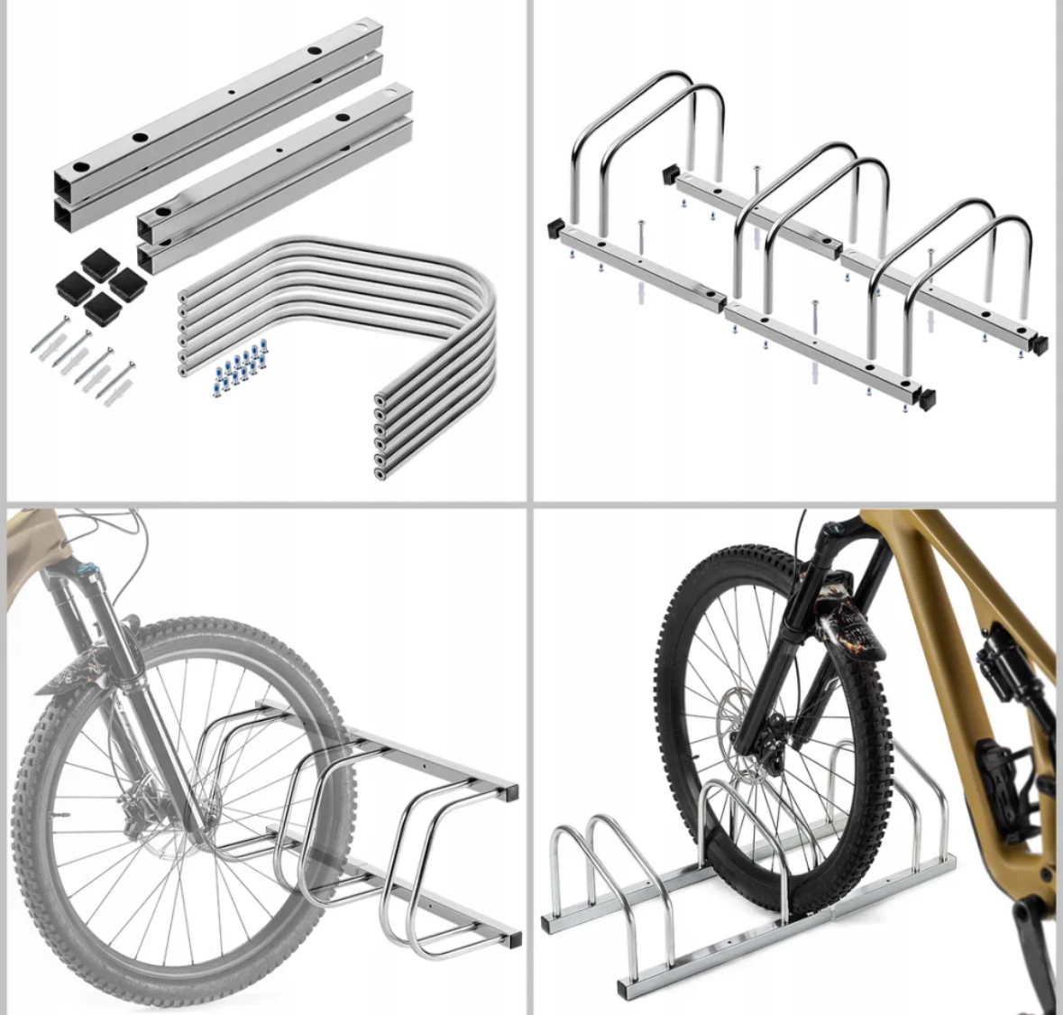 Велопарковка может использоваться как в помещении, так и на открытом воздухе. Его можно легко собрать благодаря предварительно просверленным отверстиям и прилагаемым винтам. Есть возможность прикрепить его к земле или стене.