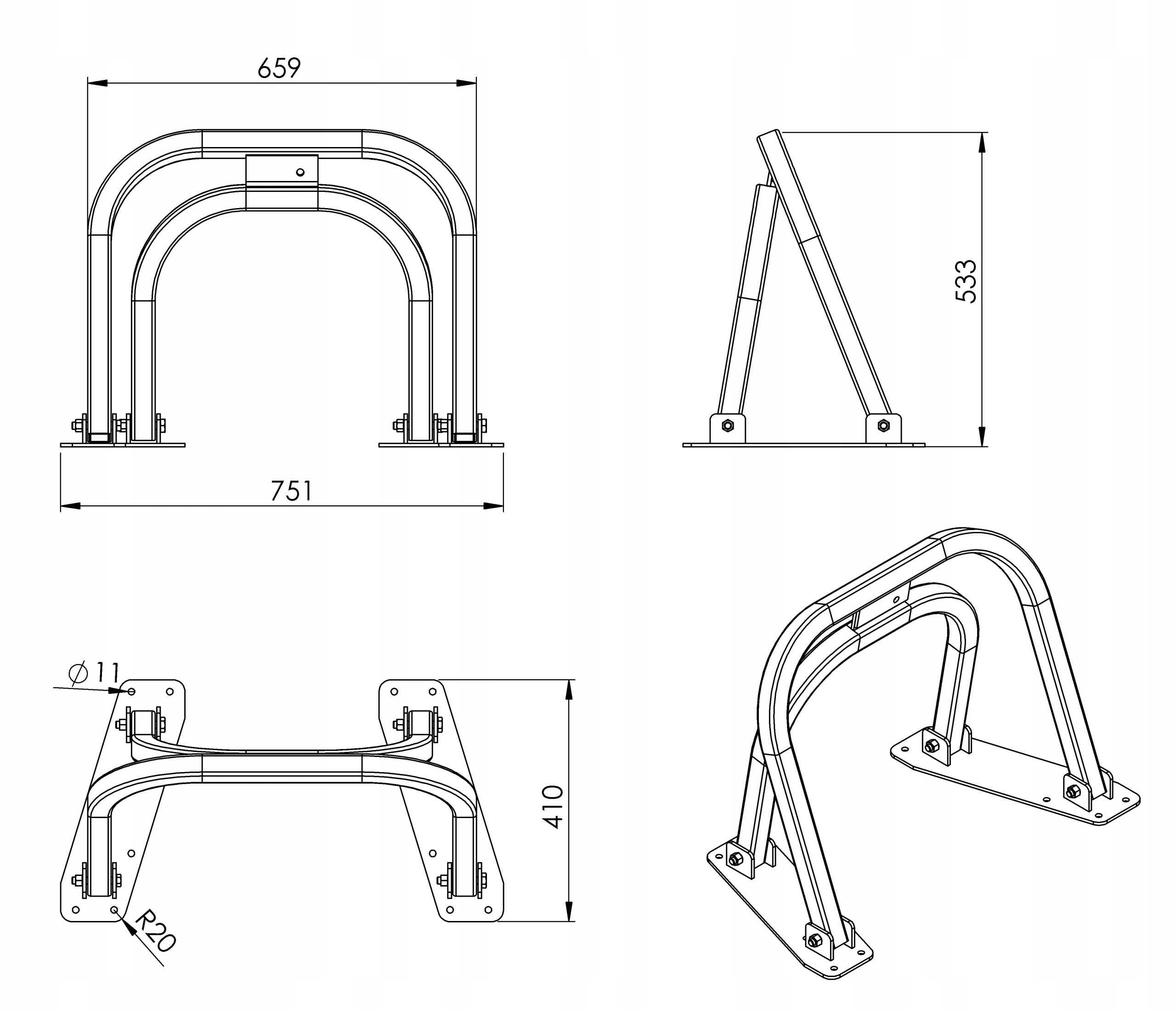Фактические размеры могут отличаться от указанных на несколько миллиметров из-за различий в изгибании различных материалов из стали.