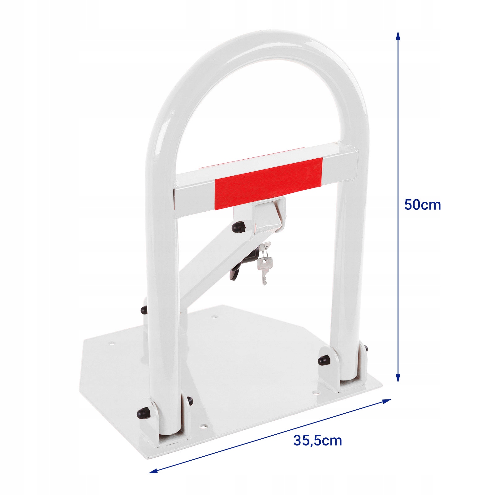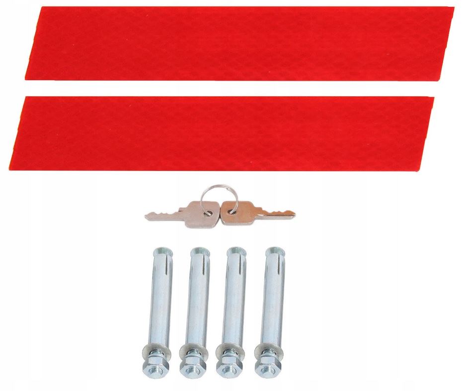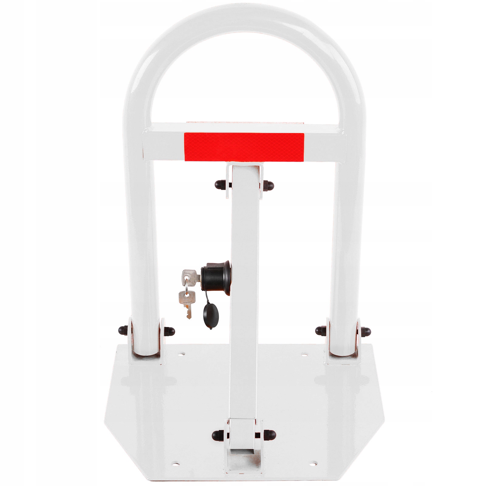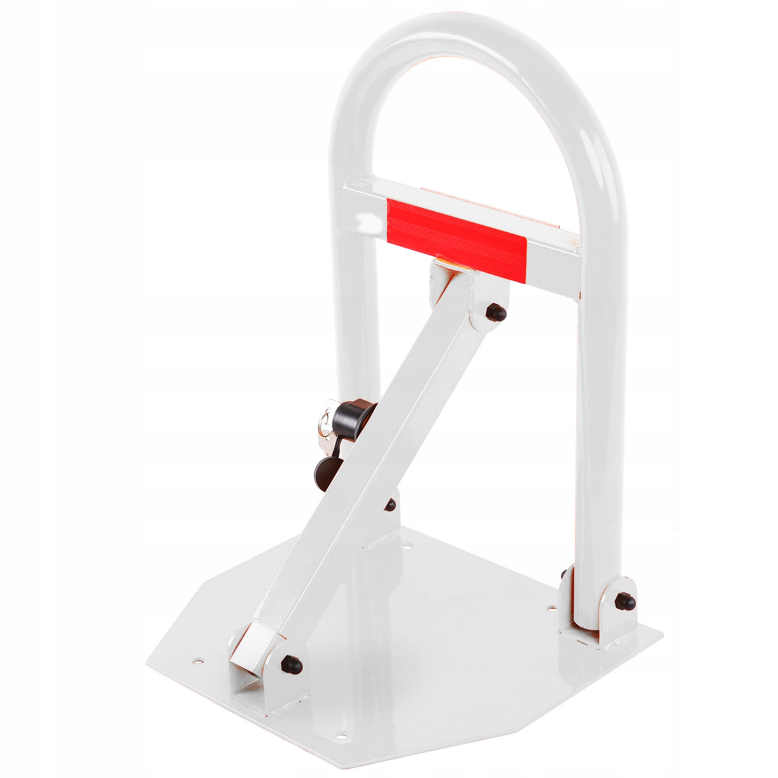 Предлагаем Вам качественный складной парковочный замок с ключом. Максимальная высота замка 50 см. Изготовлен из оцинкованной стали, покрыт порошковой краской белого цвета. Материалы для сборки включены.