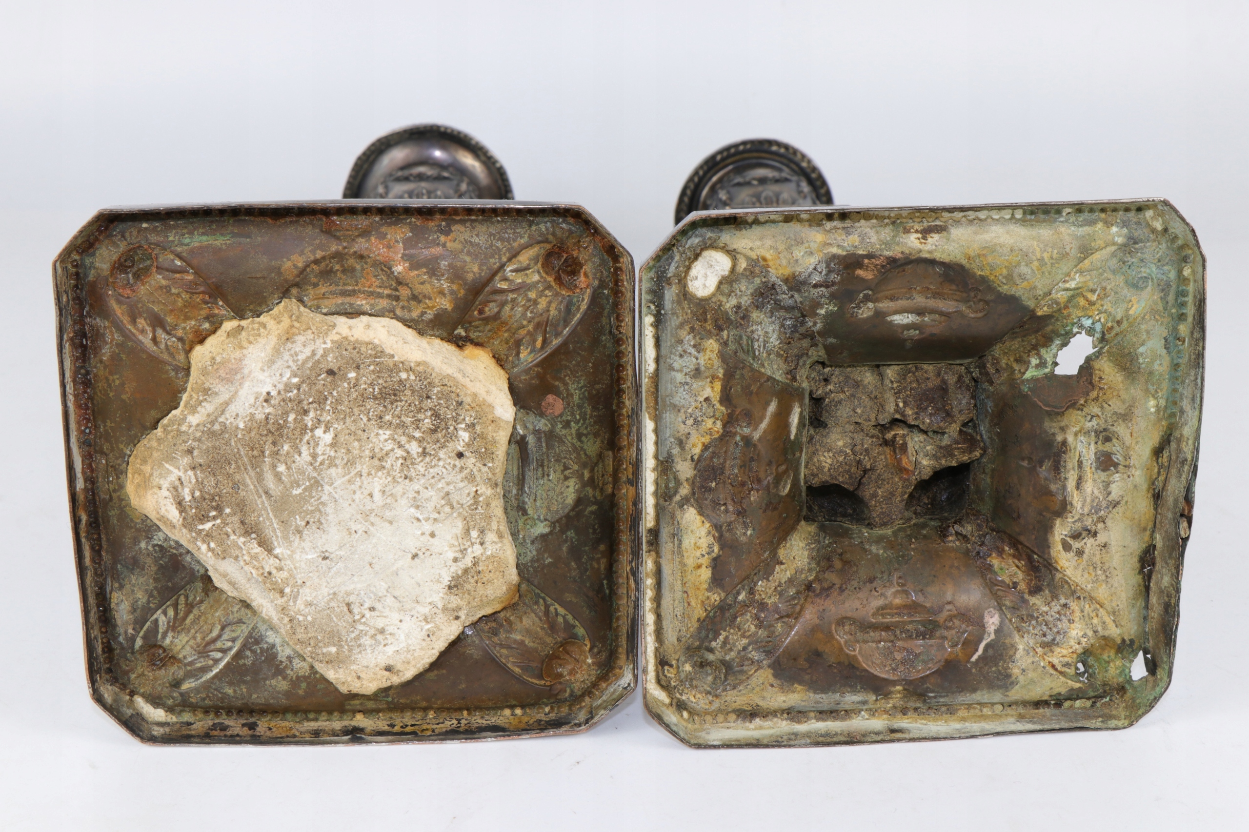 Как видно на фотографиях, в основании одного из подсвечников отсутствуют два отверстия. Повреждено наполнение внутренней части оснований подсвечников. Две разные розетки.