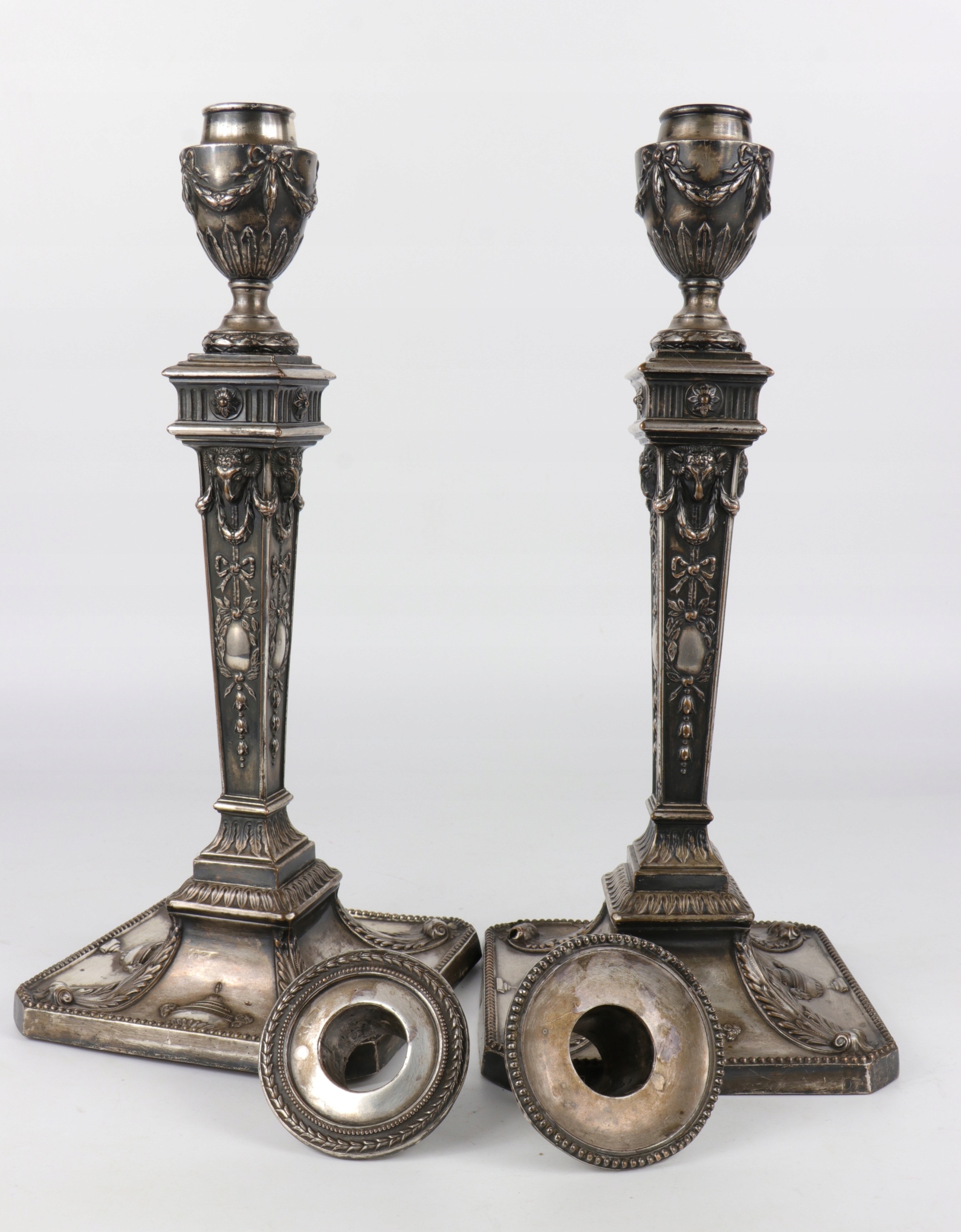 Очень интересная пара подсвечников, выполненных в неоклассической форме ампира. По-моему, подсвечники первой половины 19 века, периода Наполеона I, Реставрации Бурбонов. Украшен классическими мотивами гирлянд, пальмовых листьев, старинных ваз и бараньих голов, опоясанных веревками гирлянд. Красивые, очень точные отливки. Прекрасное украшение любого интерьера. Подсвечники подписаны у основания, к сожалению, подпись неразборчива.