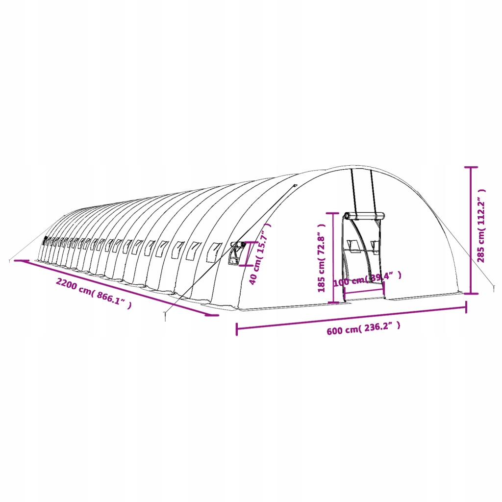 Теплица со стальной рамой, зеленый, 132 м², 22x6x2,85 м.