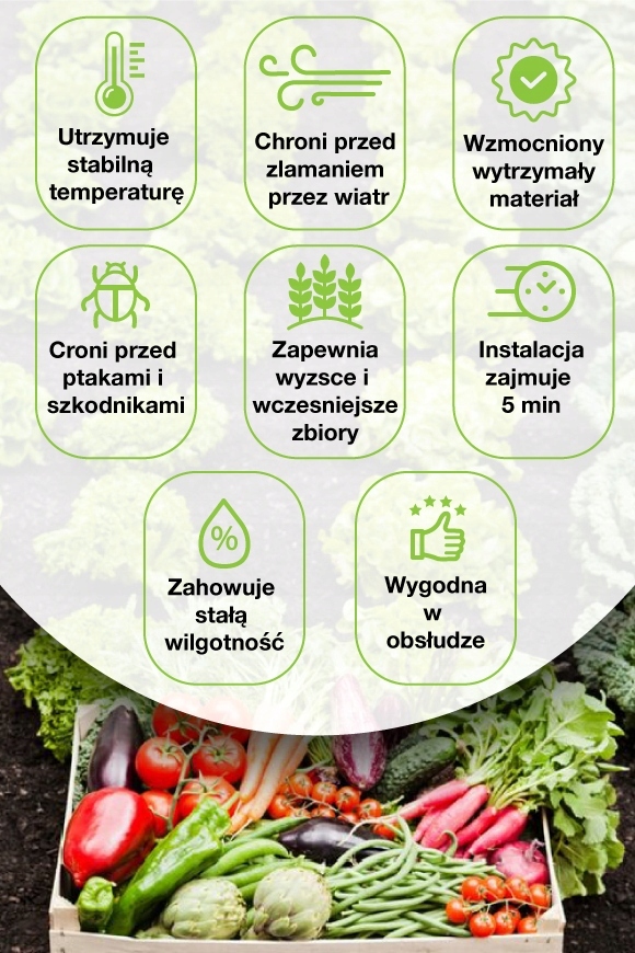 Идеально идеально подходит в растущих овощах и других растениях, он эффективно защищает их при любых погодных условиях.